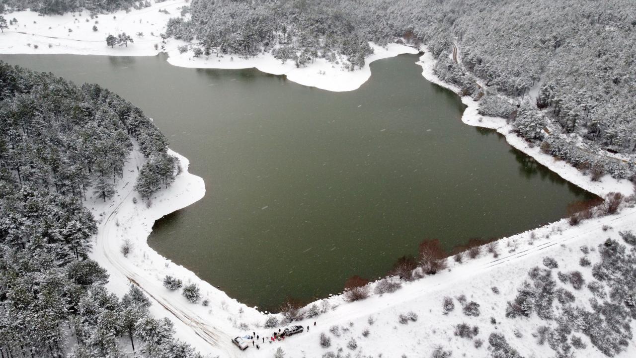 Bazı vatandaşlar göletin bulunduğu bölgeye gelerek hem karın hem de manzaranın keyfini çıkardı.