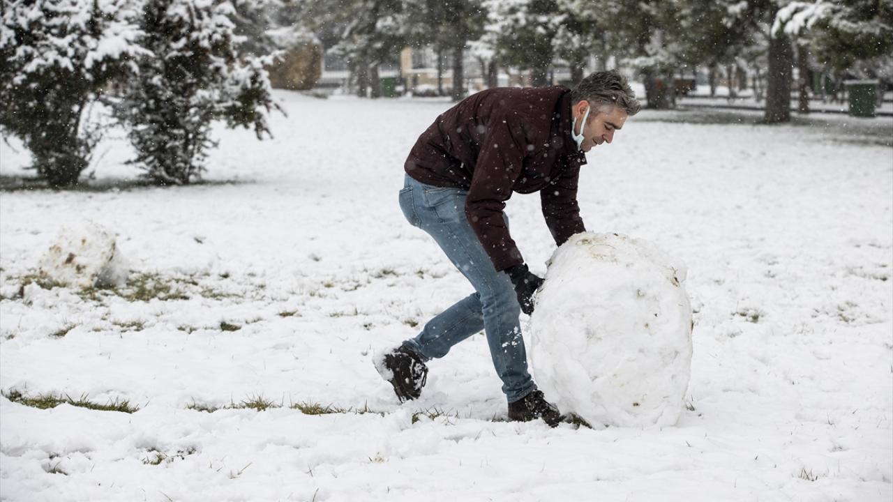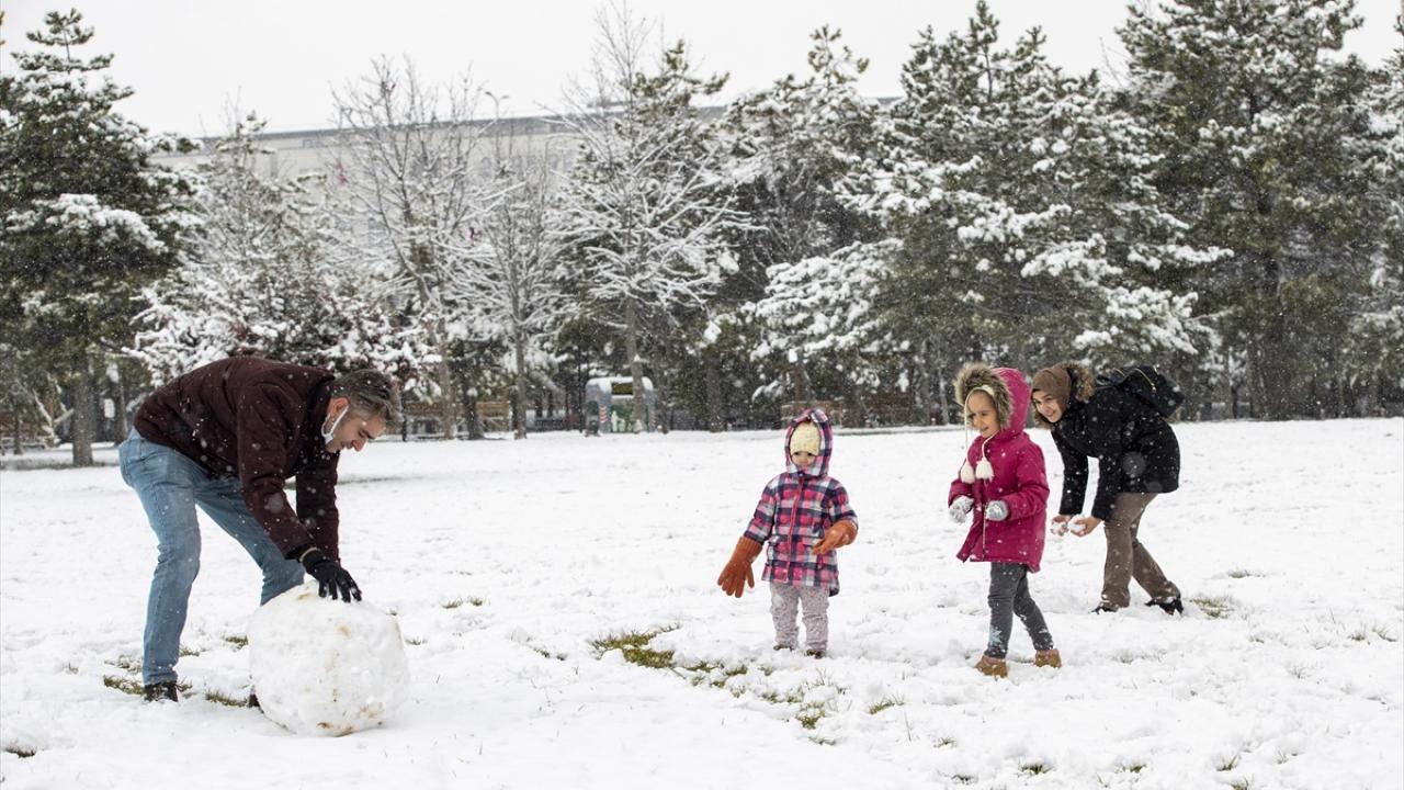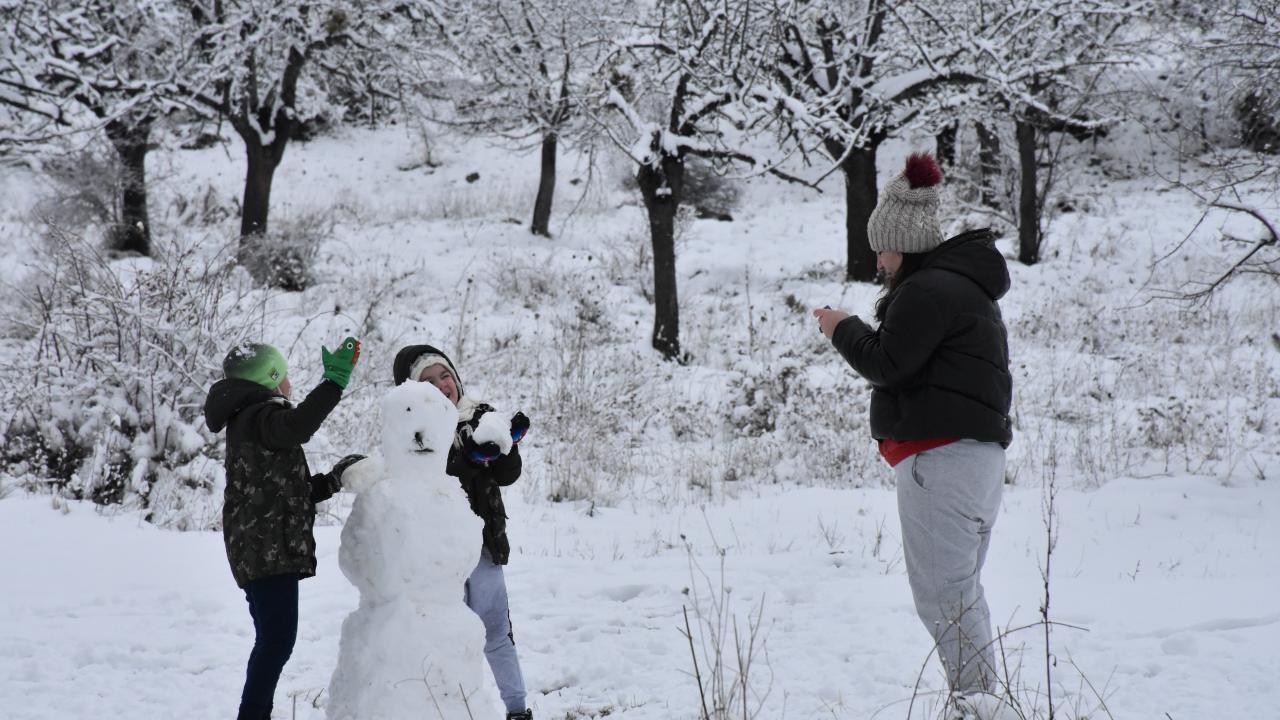 Ailece kardan adam yapan, kartopu oynayan vatandaşlar, eğlenceli anlarını cep telefonlarıyla görüntüledi.