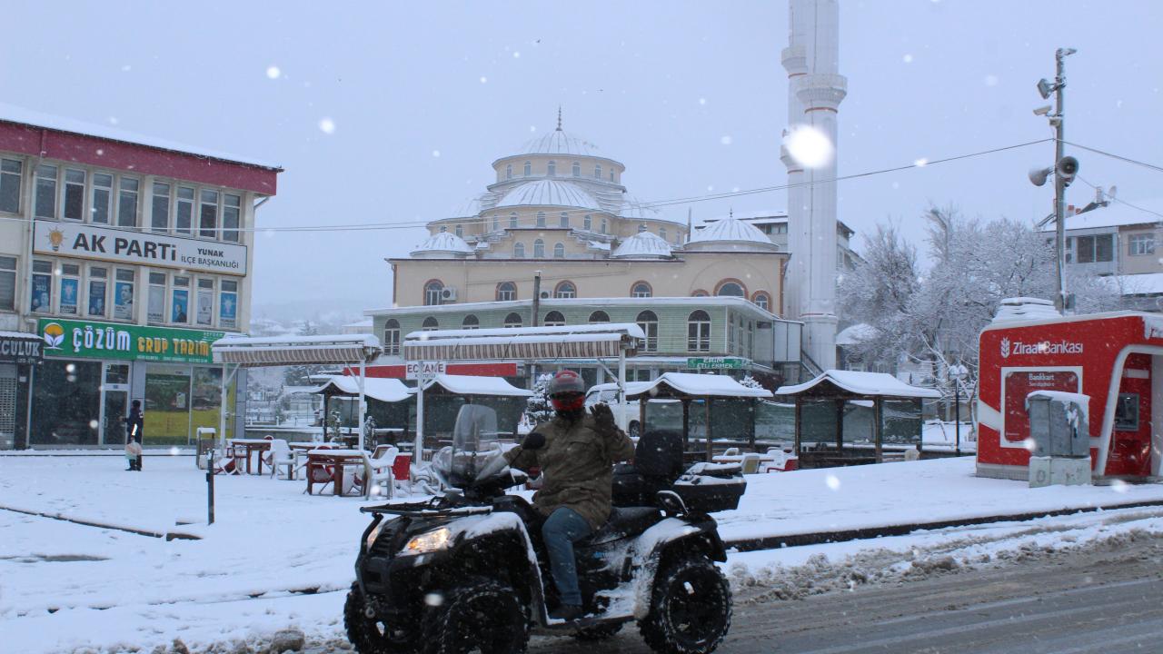 Konya’nın Yalıhüyük ilçesinde dün geceden itibaren etkili olmaya başlayan kar ilçeyi beyaza bürüdü.