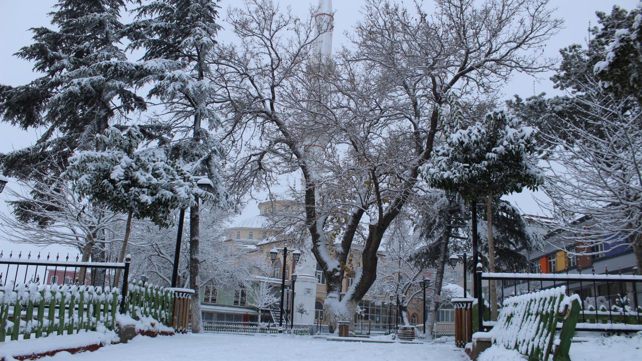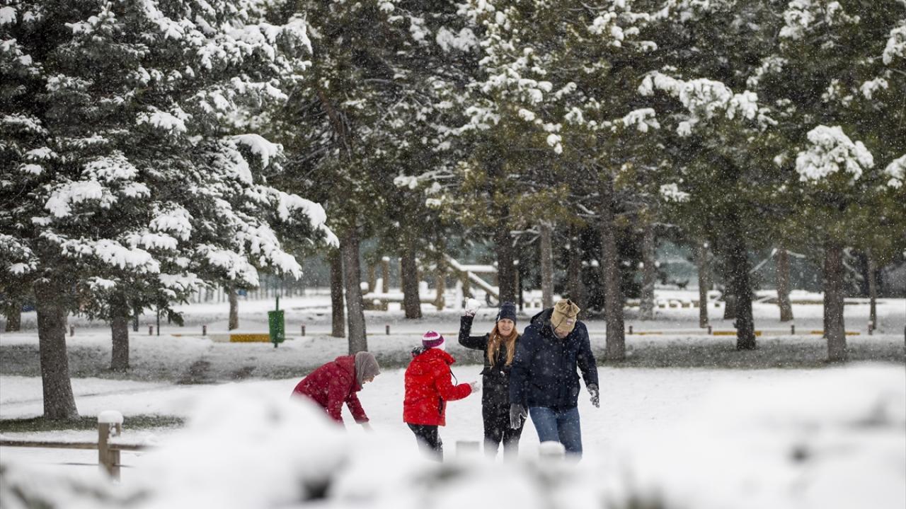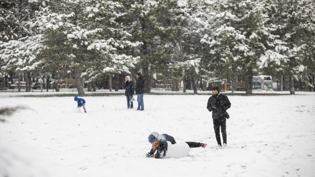 Şehrin parklarında kar yağışı kartpostallık görüntüler oluşturdu, vatandaşlar ortaya çıkan güzel görüntüleri fotoğrafladı.