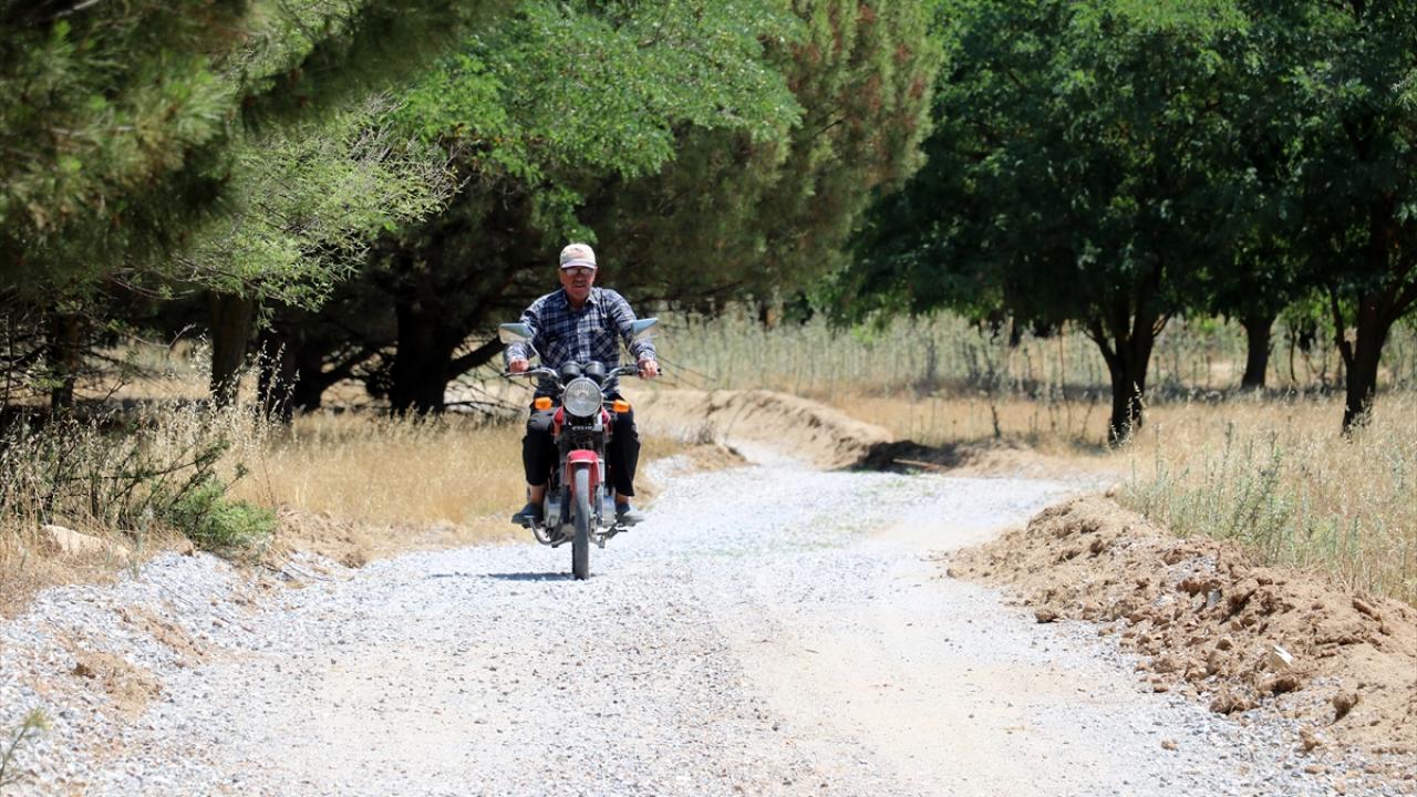 Eski görüntülerde çölü andıran arazide motosikletiyle kameraya yansıyan Ayhan Demiray ise aynı güzergahta ağaçların arasından giden yolu kullanmanın mutluluğunu yaşıyor.