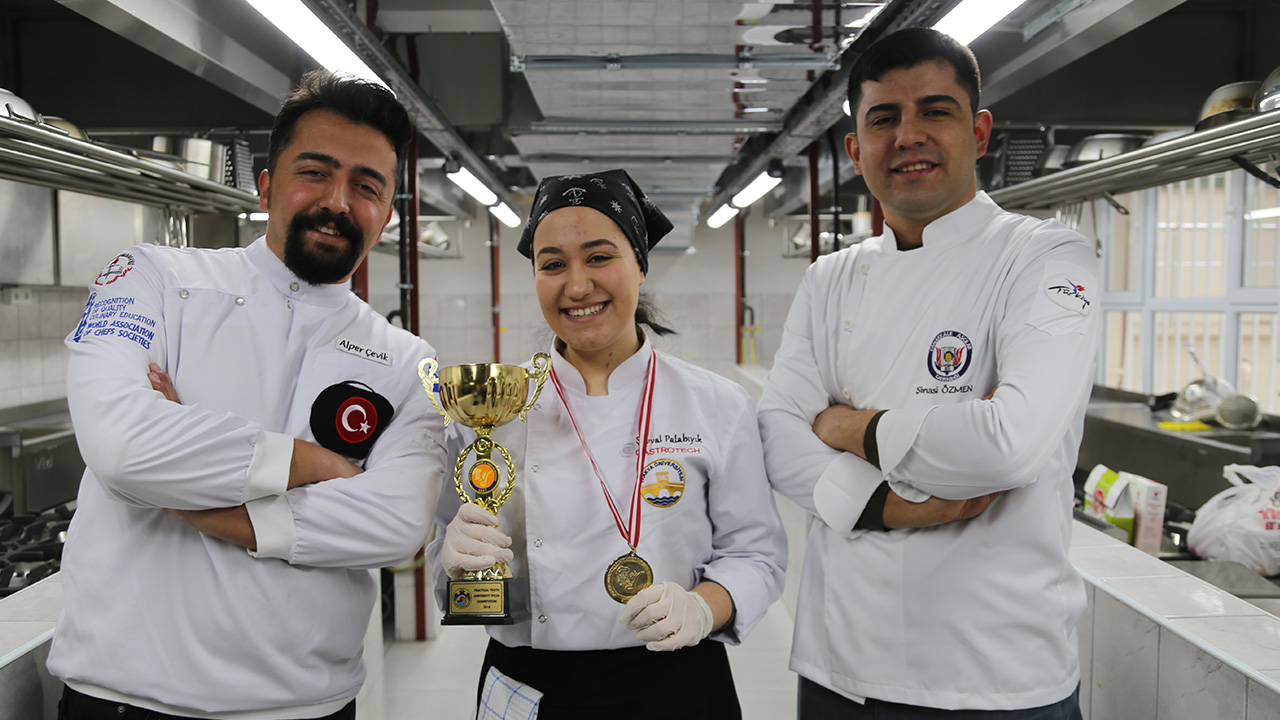 Yarışmada derece alan Aşçılık Bölümü öğrencisi Şevval Palabıyık da hocalarının yardımıyla hazırladığı pizzayla yarışmada altın madalya kazandığını söyledi. Palabıyık, "Pizza kategorisinde altın madalya aldım. Lise, üniversite ve usta şefler arasından birinci seçildim. Yarışmada hazırladığım Trakya Yöresel Pizzası çok sevildi. O kadar beğenildi ki ikinci pizzayı açtım, zamanımın yetmeyeceğini düşünürken üçüncü pizzayı istediler. Jürilerden biri `o pizza benim kimseye vermem` dedi." ifadelerini kullandı.