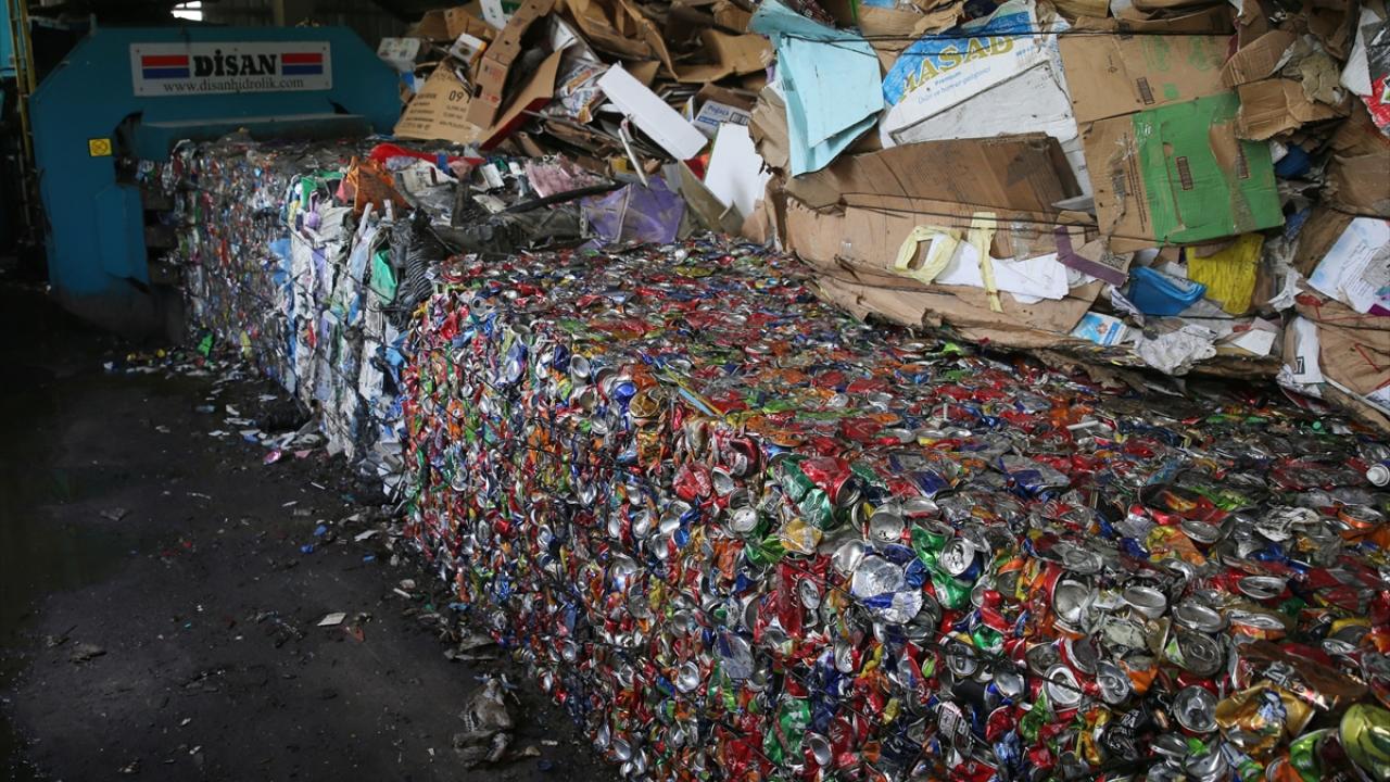 Kaynağında ayrıştırılarak biriktirilen ve ayrı araçlarla tesise getirilen ambalaj atıkları da buradaki ünitede preslendikten sonra geri dönüşüm için fabrikalara gönderiliyor.