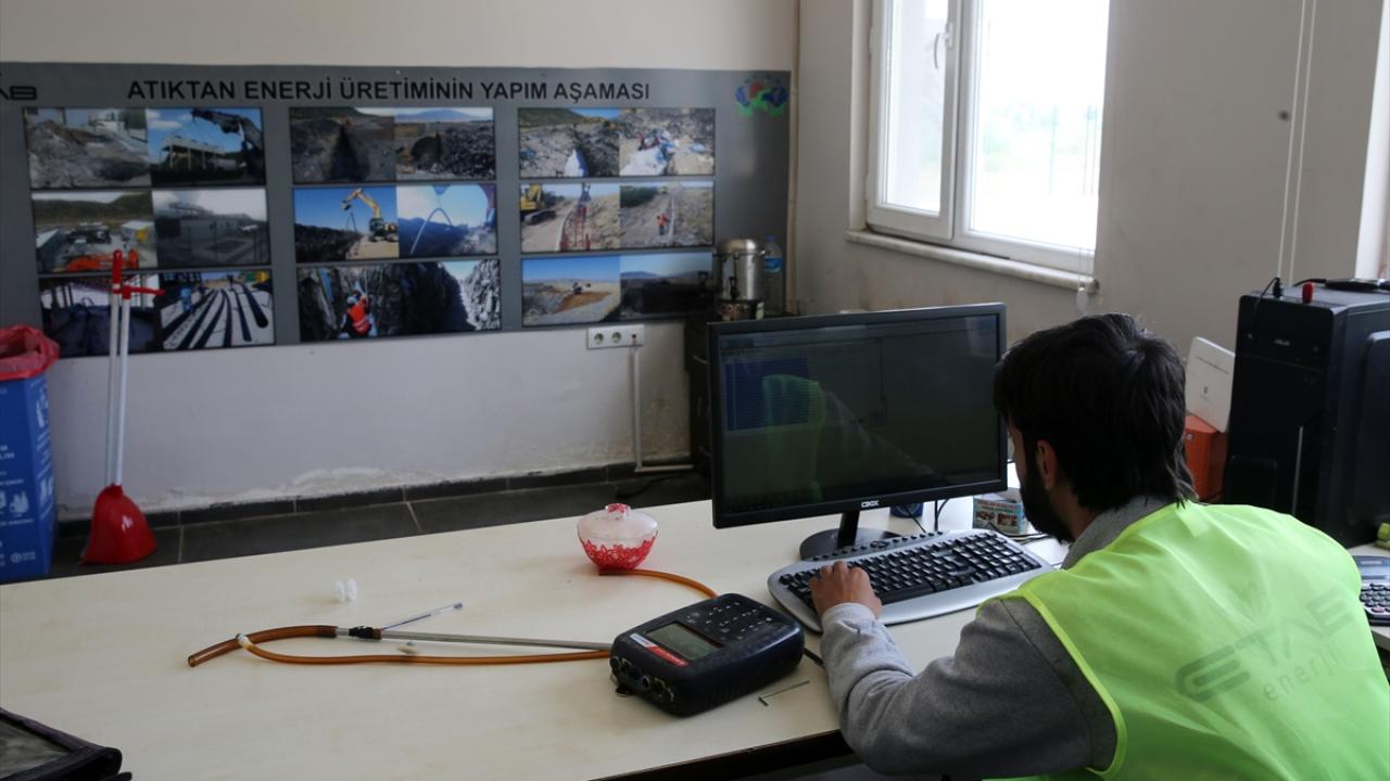 Düzenli depolama ve bertaraf alanında biriktirilerek üzeri kapatılan çöplerden çıkan metan gazından üretilen elektrik, enerji nakil hattına aktarılıyor.