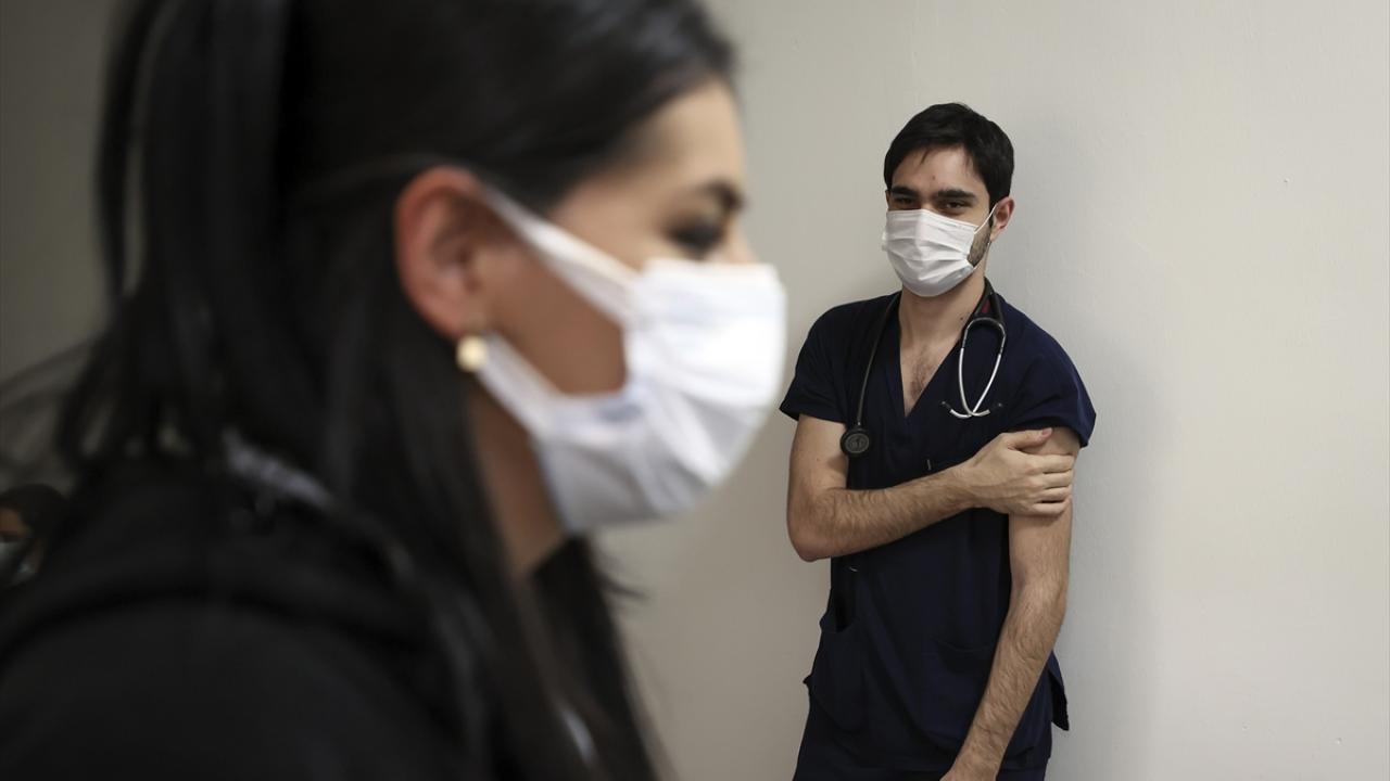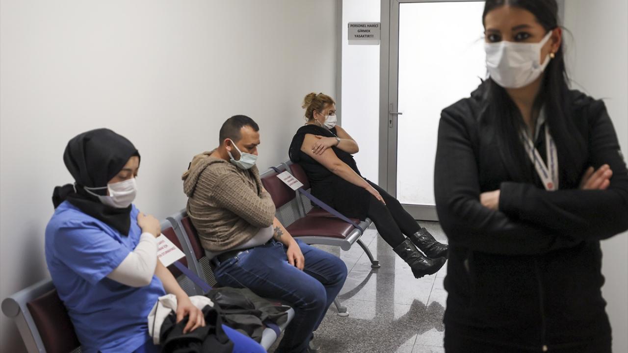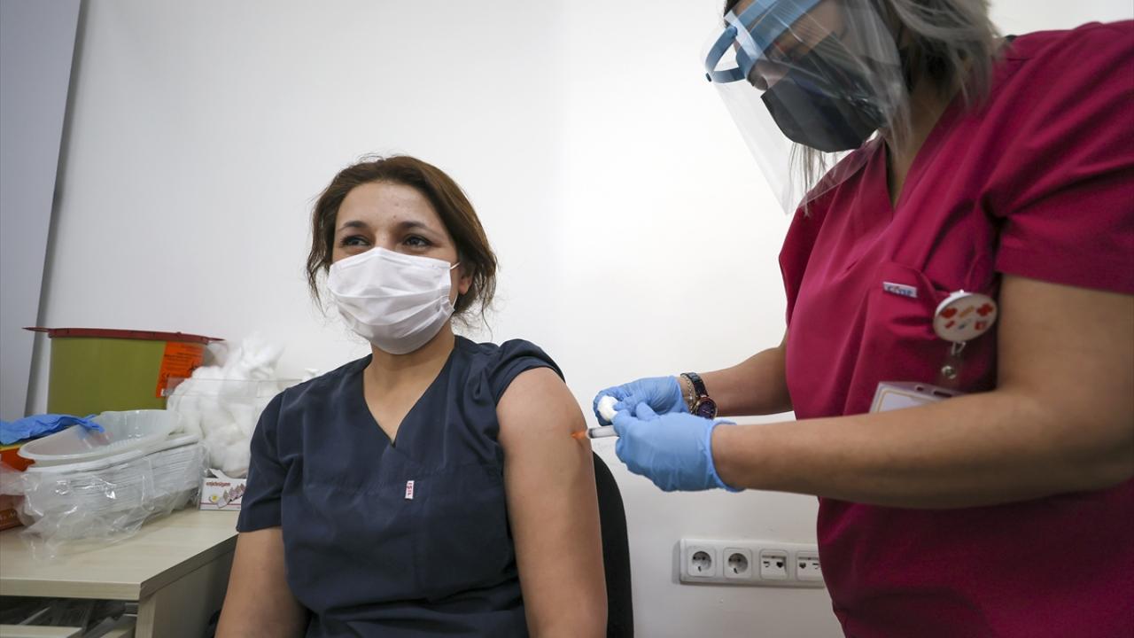 Türkiye İlaç ve Tıbbi Cihaz Kurumunca analizleri tamamlandıktan sonra "Acil Kullanım Onayı" verilen CoronaVac aşısı, Ankara İbni Sina Hastanesi'nde sağlık çalışanlarına uygulanmaya devam edildi.
