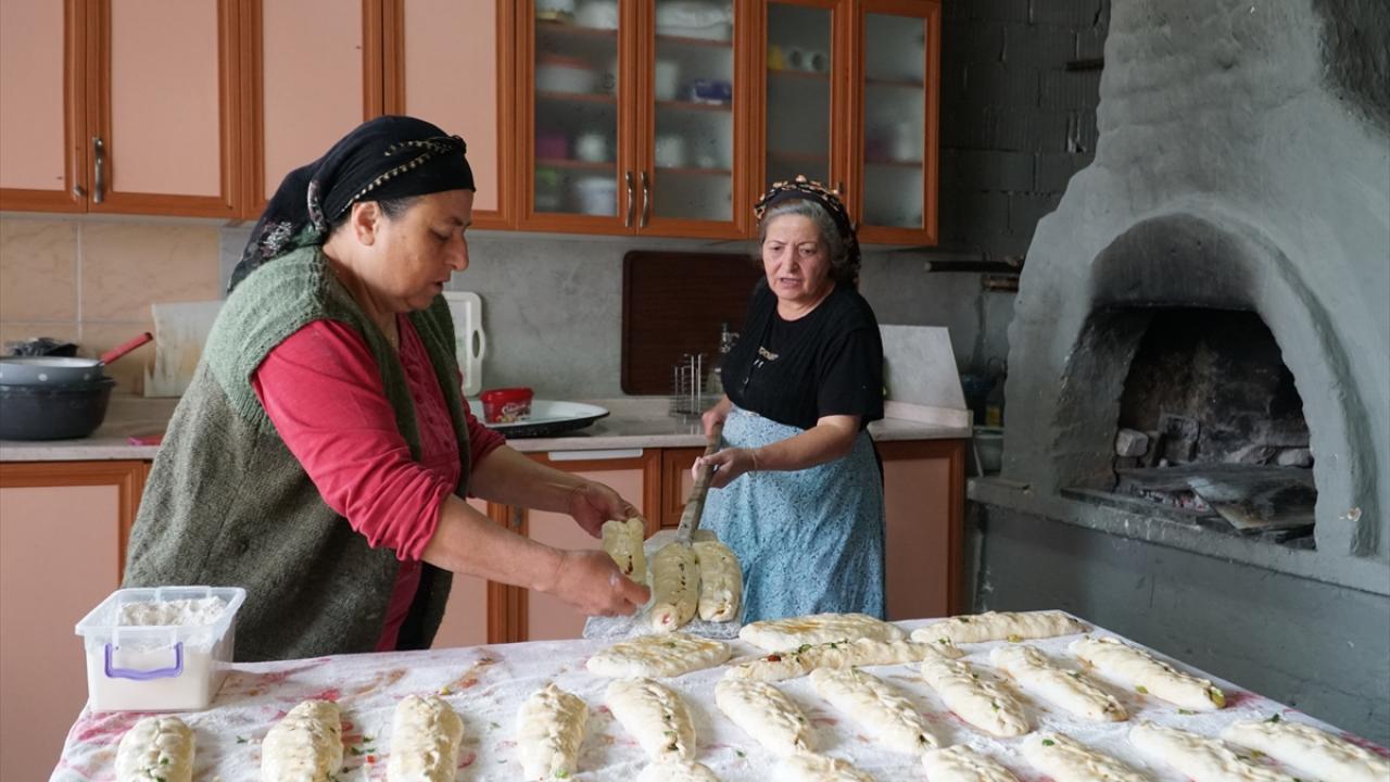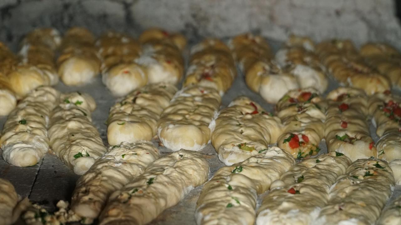Evlerinde hamurunu ve iç malzemesini hazırlayan kadınlar, fırında kaşarlı, peynirli, çökelekli, kıymalı ile sebzeli pidelerini pişiriyor.