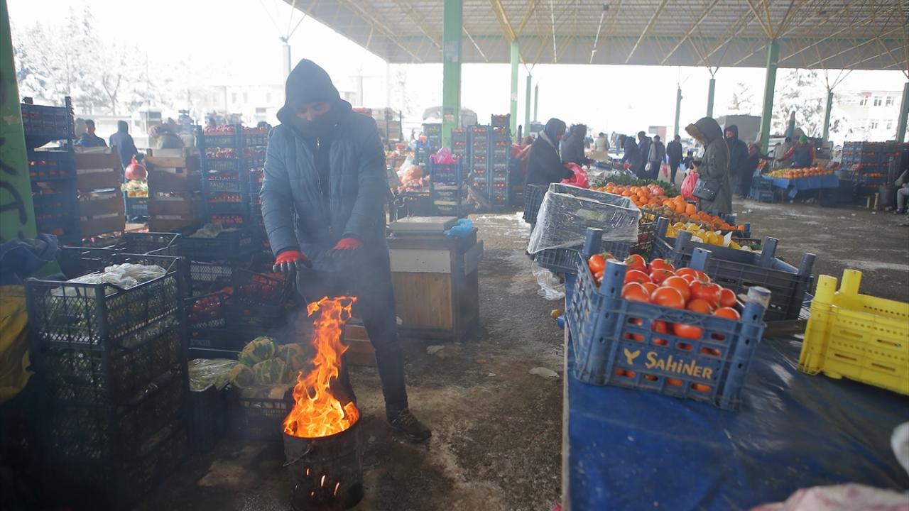 Kentte etkili olan dondurucu soğukta mesaiye başlayan pazar esnafı ise tezgahının arkasında soba ve tenekelere yaktığı ateşle ısınmaya çalıştı.