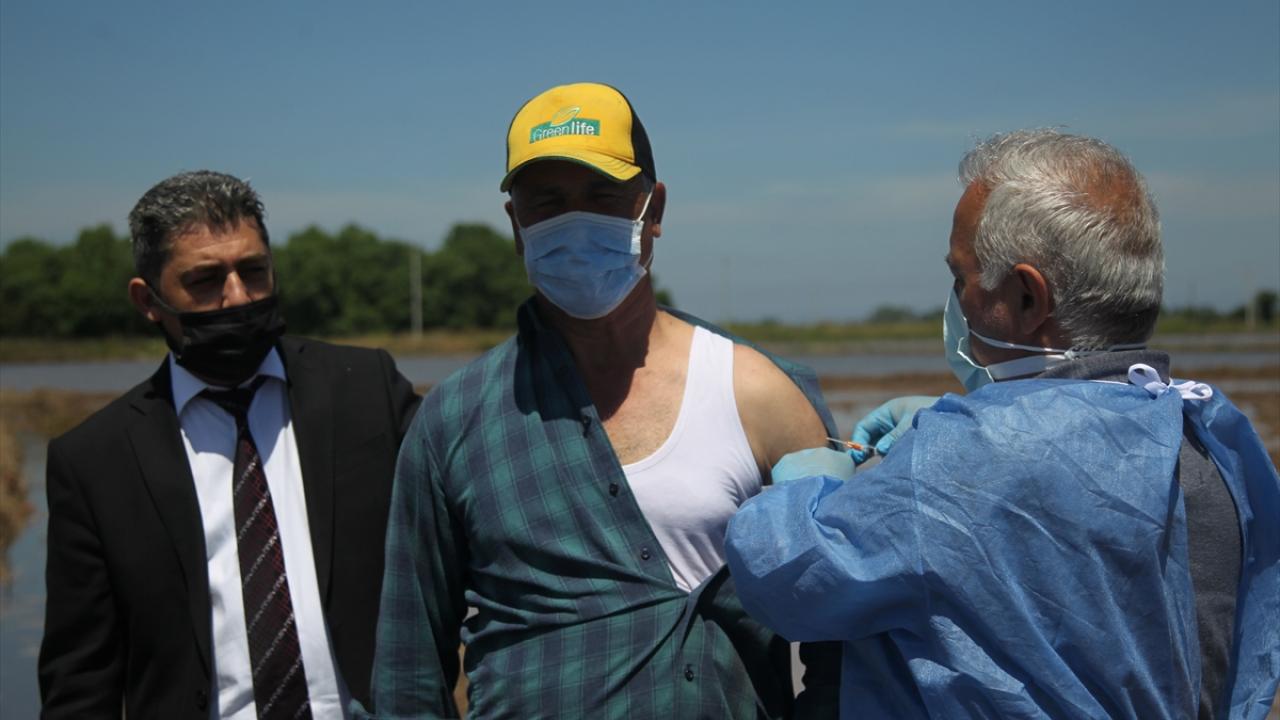 Türkiye'nin en önemli ovalarından Bafra Ovası'nda çeltik ekimi nedeniyle yeni tip koronavirüs (Covid-19) aşısı olmaya gidemeyen çiftçi, sağlık çalışanlarının özverili çalışması sayesinde tarlalarında aşı oldu.