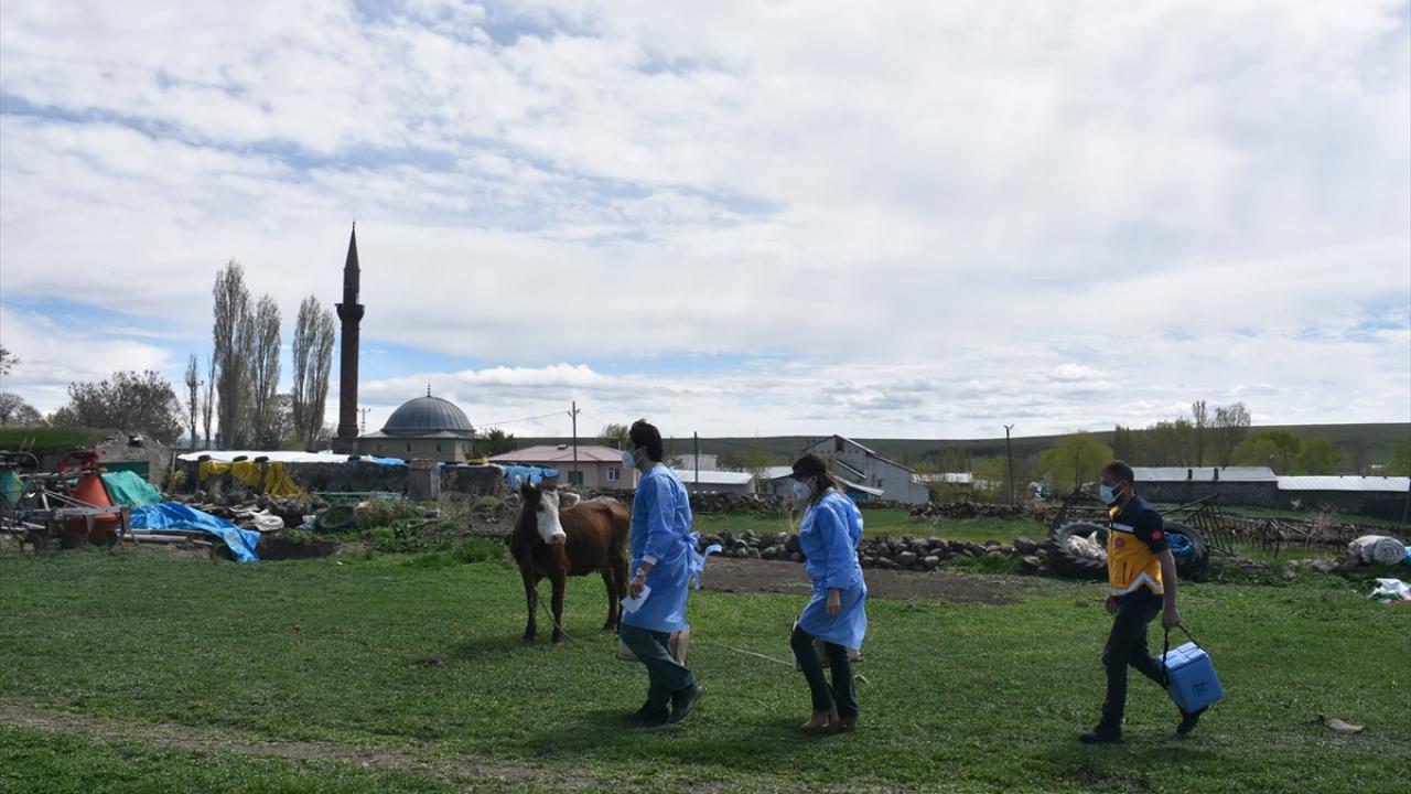 Kars'ta, yeni tip koronavirüs (Covid-19) ile mücadelede aşılama oranlarını artırmak için oluşturulan ekipler, zorlu coğrafyadaki dağları, tarlaları, çamurlu yolları aşarak kilometrelerce yol gidip vatandaşlara hizmet sunuyor.