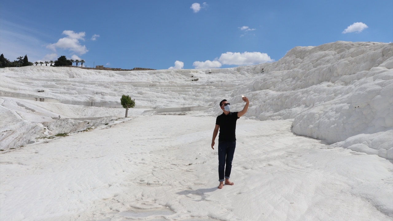 Türkiye'nin önemli turizm destinasyonlarından Pamukkale, yeni tip koronavirüs (Covid-19) nedeniyle verilen aranın ardından turistleri yeniden ağırlamaya başladı.