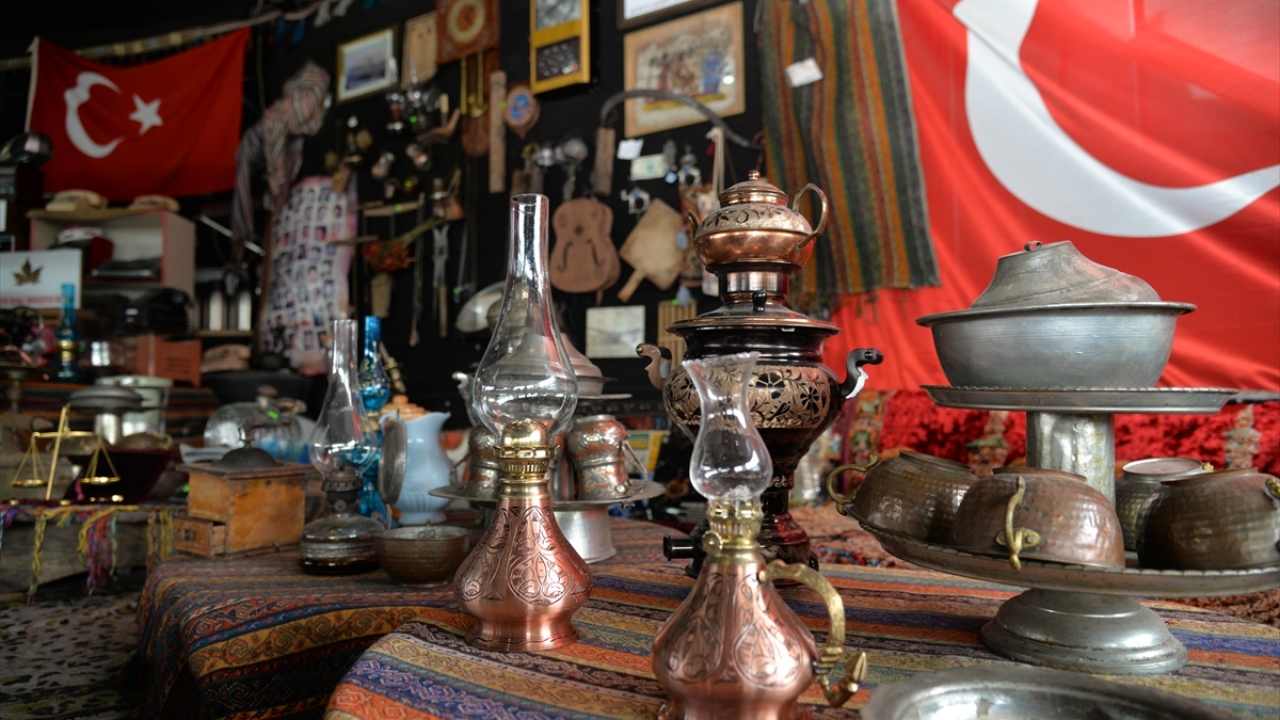 Covid-19 sürecinde topladığı eski eşyaları "kıl çadır" lokantasında sergiliyor