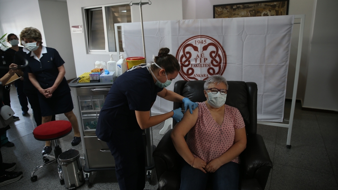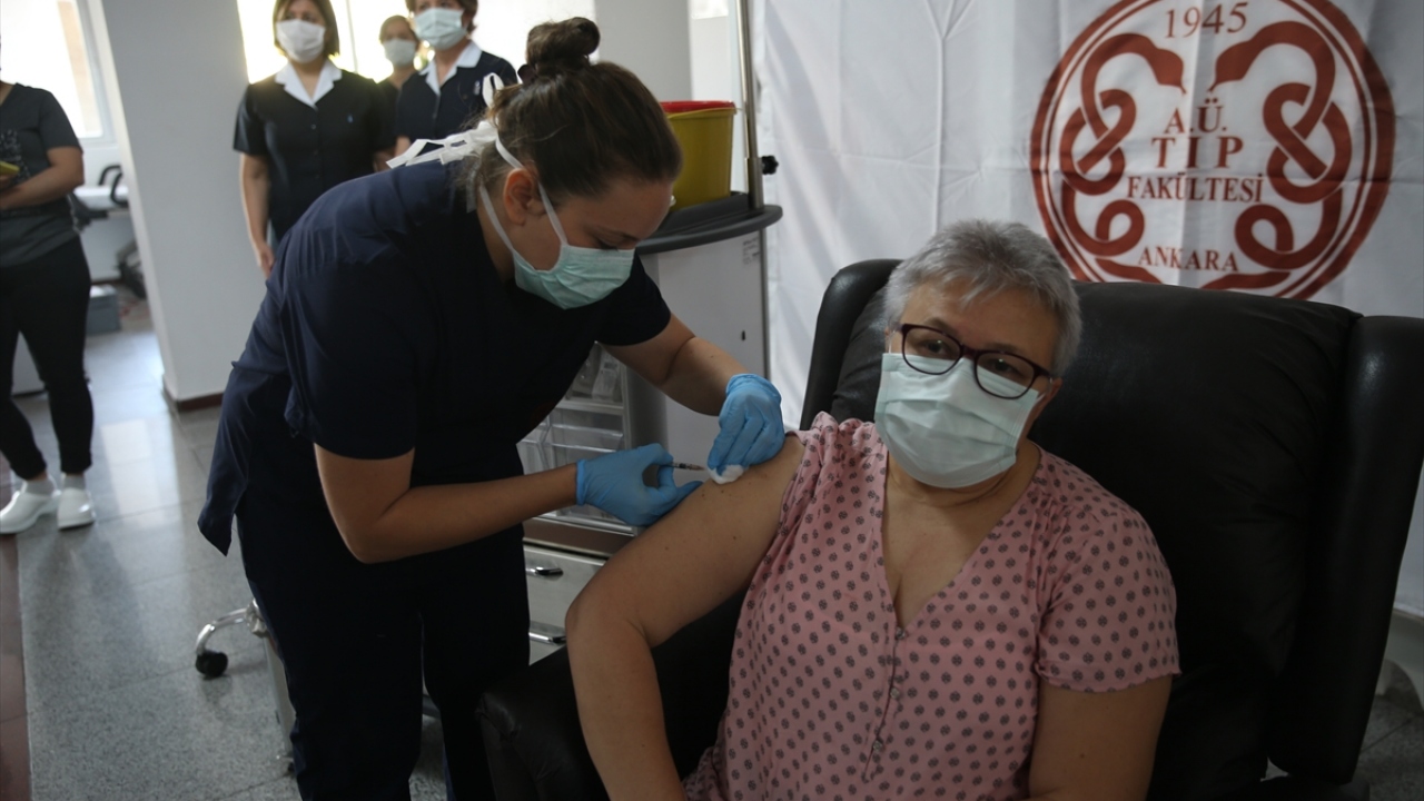 İlk aşı, İbni Sina Hastanesinde görev yapan Ankara Üniversitesi Tıp Fakültesi Anestezi ve Reanimasyon Anabilim Dalı Öğretim Üyesi Prof. Dr. Mustafa Necmettin Ünal ile Beyin ve Sinir Cerrahisi Anabilim Dalı Öğretim Üyesi Prof. Dr. Ayhan Attar`a uygulandı.