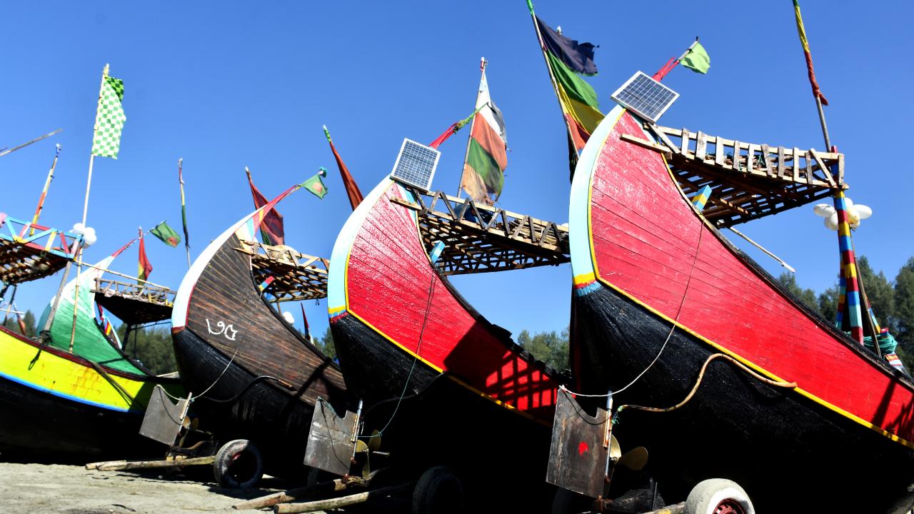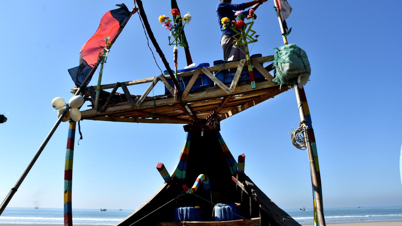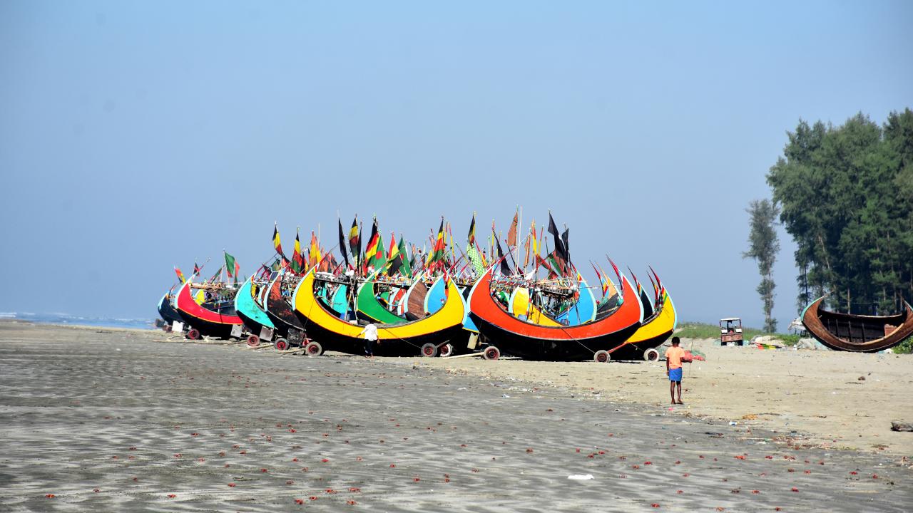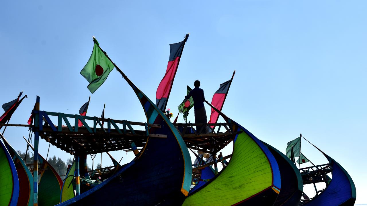 Bangladeş'in Cox's Bazar kentinde balıkçılar tarafından geleneksel renklere boyanarak kullanılan kayıklar dikkat çekiyor.