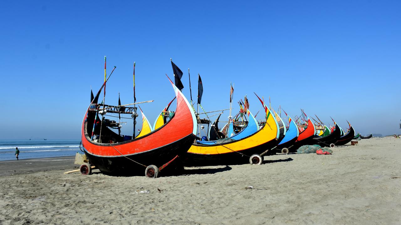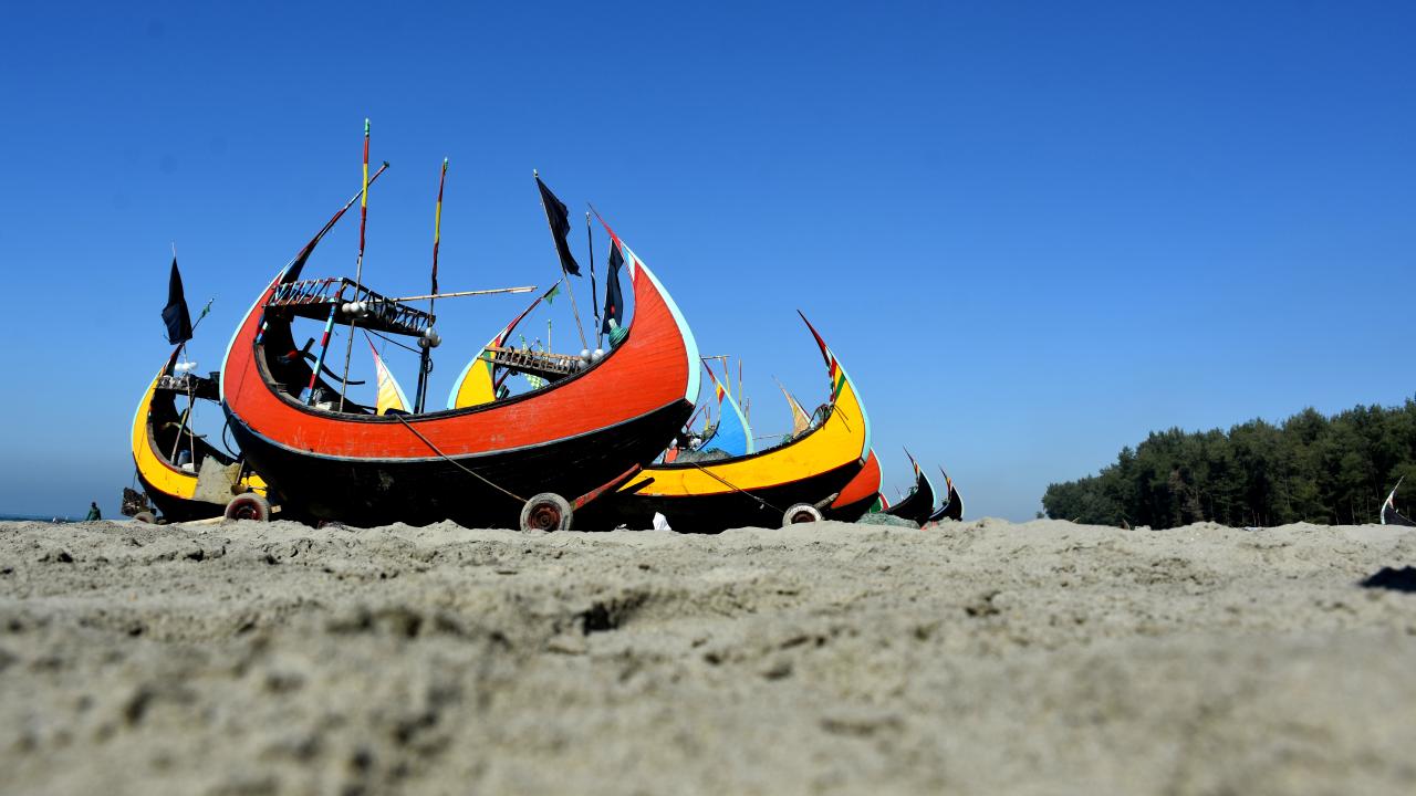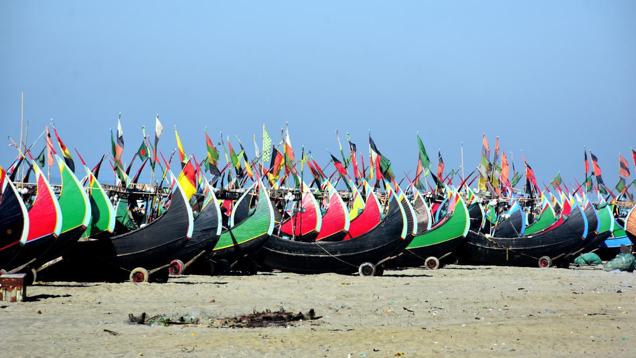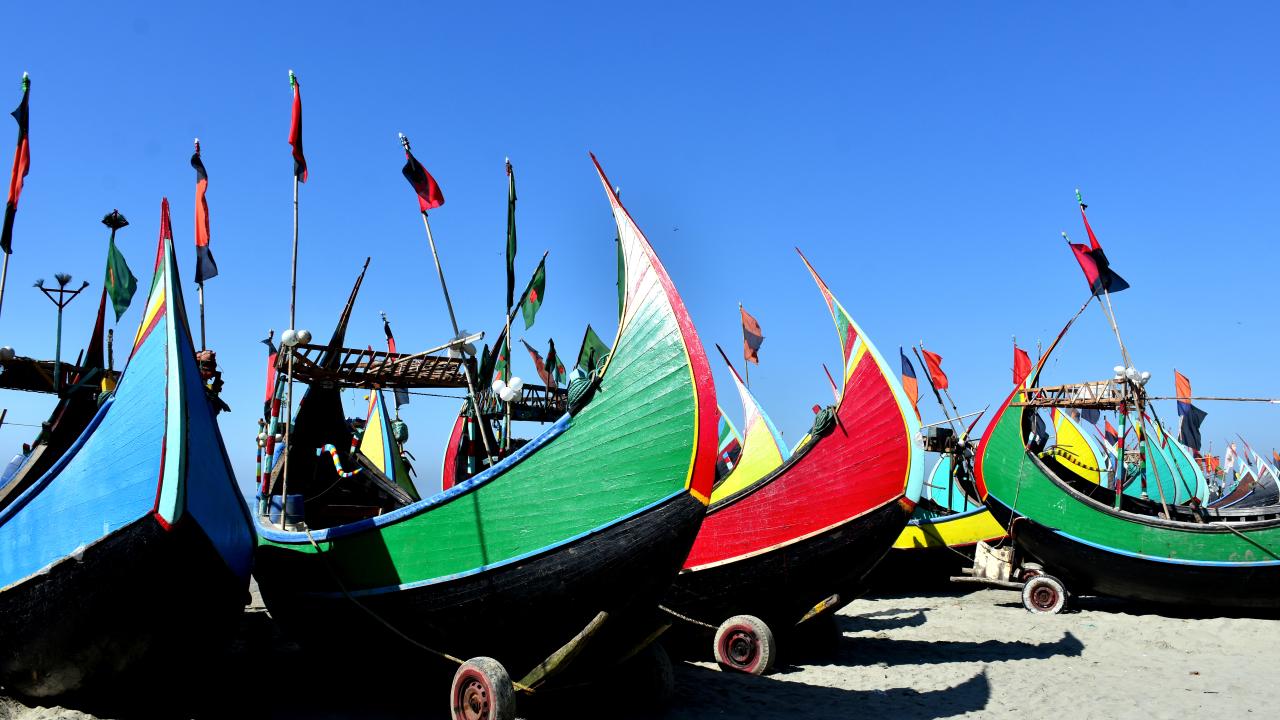 Cox's Bazar'daki renkli balıkçı kayıkları