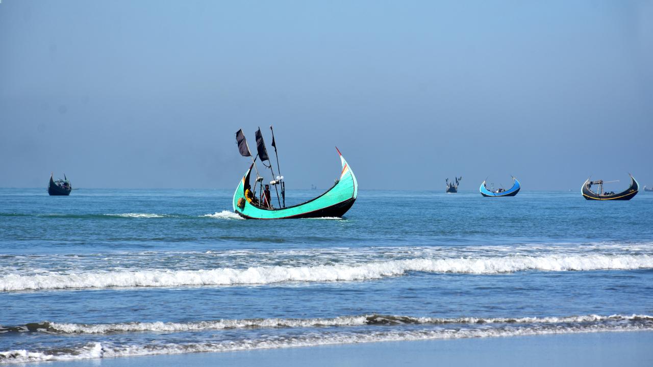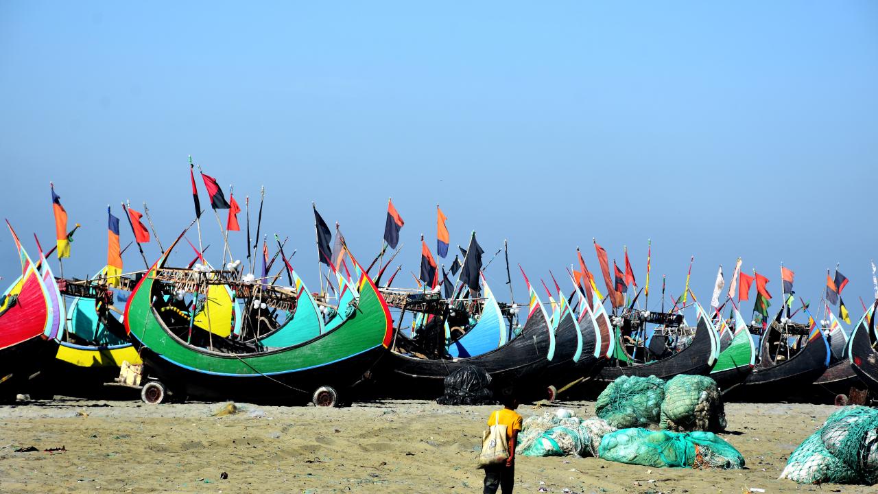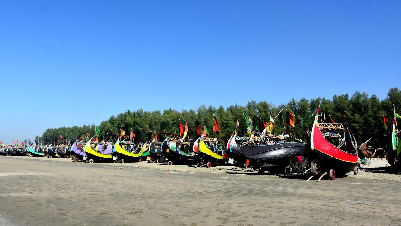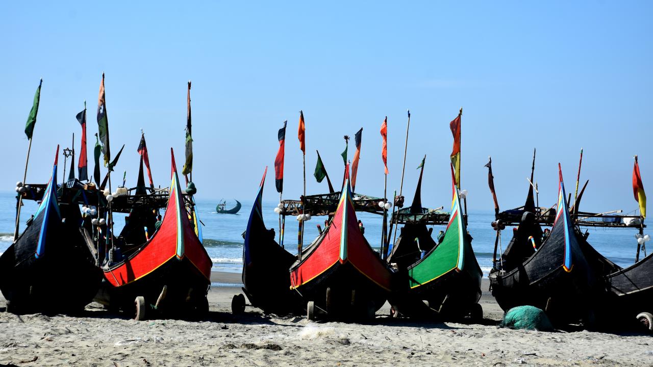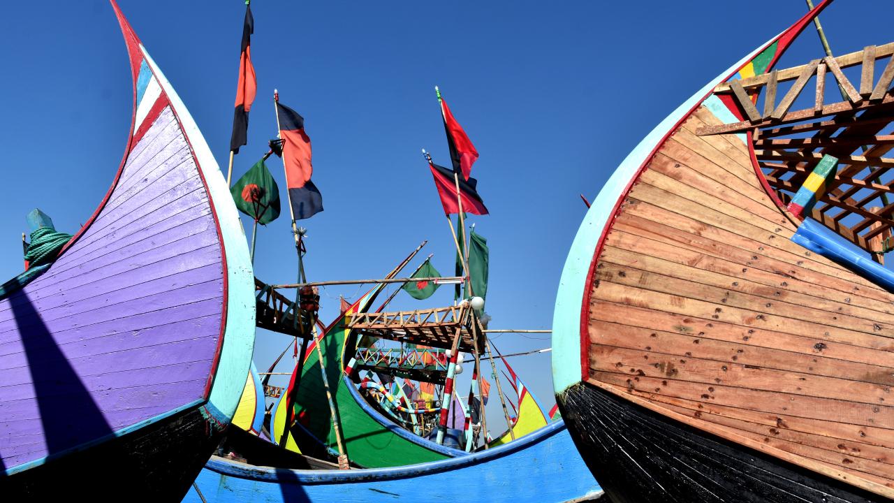 Cox's Bazar'daki renkli balıkçı kayıkları
