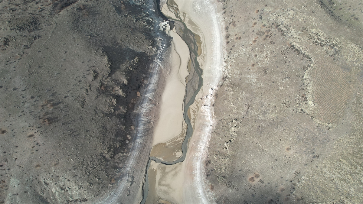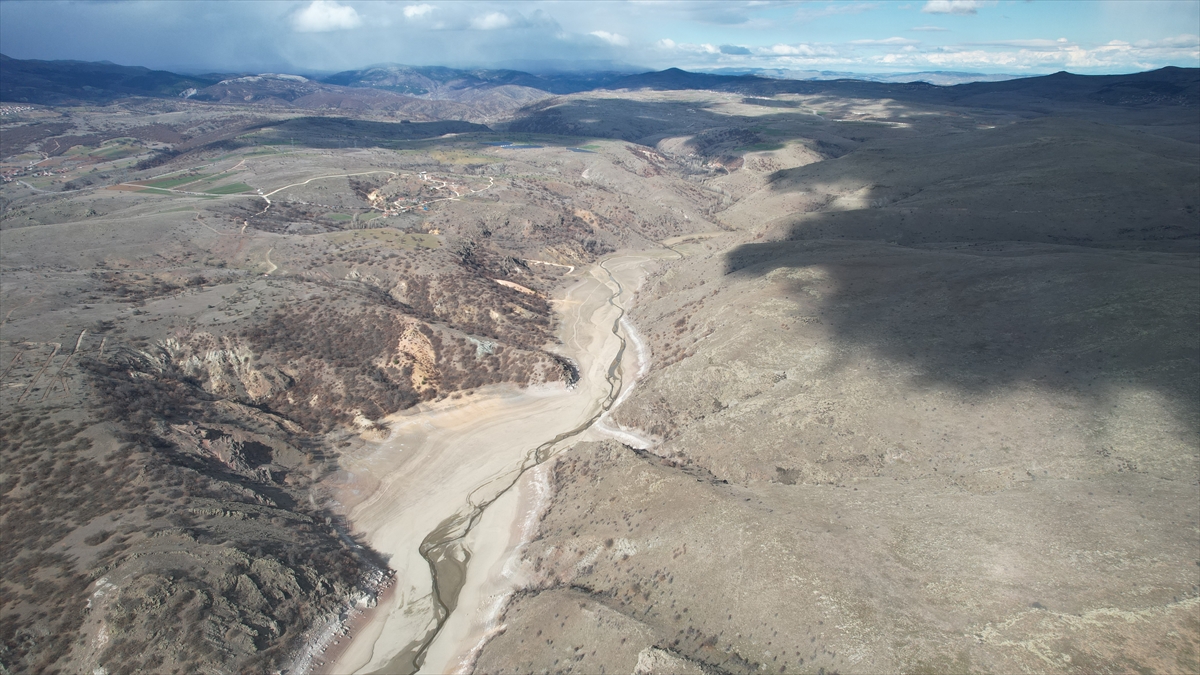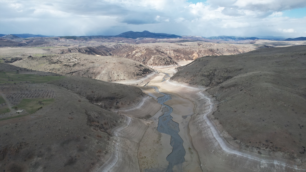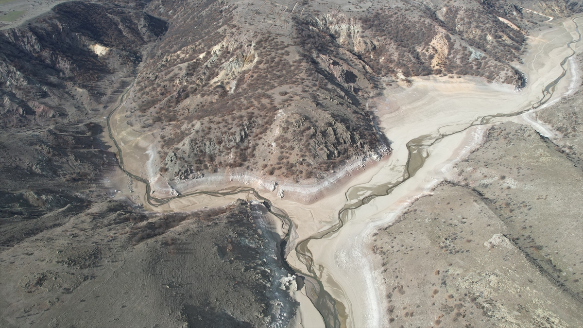 Büyük bir kısmı kuruyan baraj havadan görüntülendi.