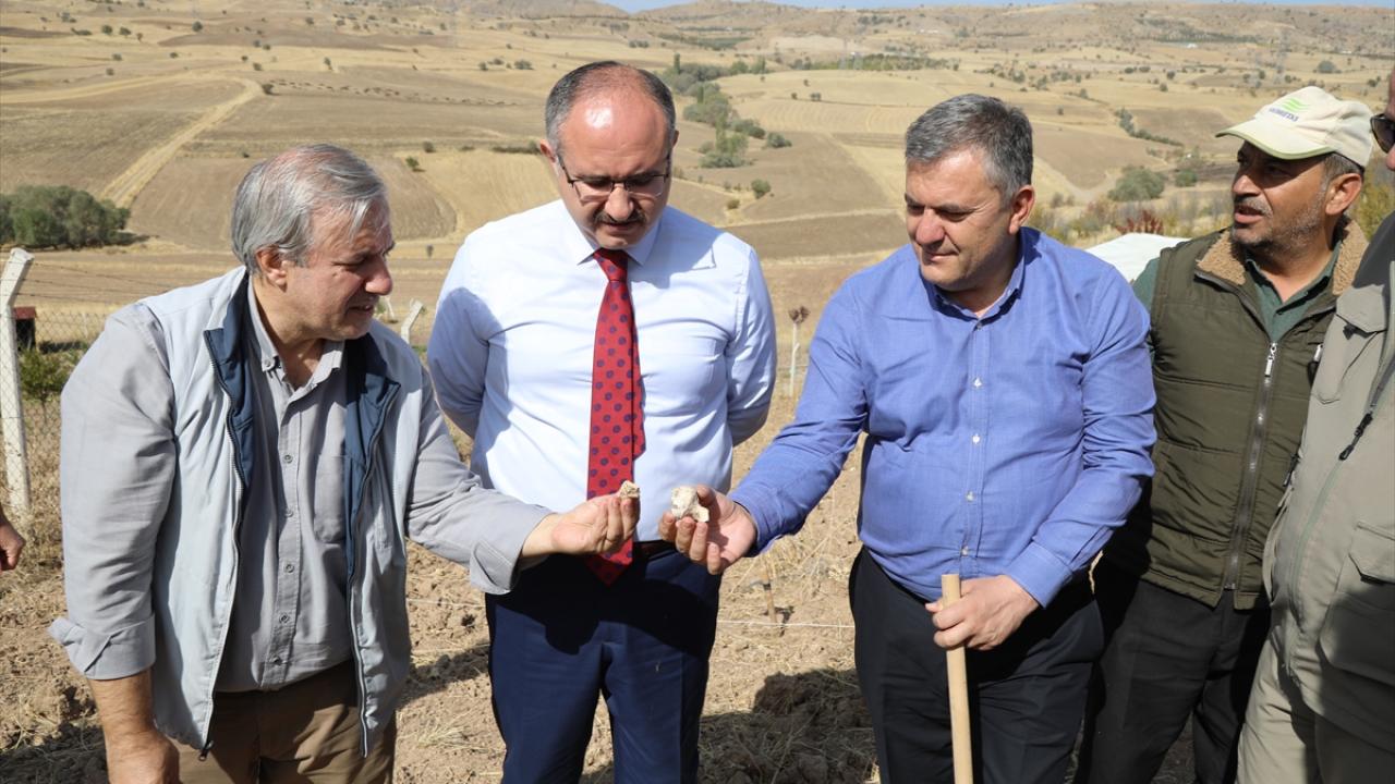Çubuk Kaymakamı Adem Keleş, Belediye Başkanı Baki Demirbaş ve AYBÜ Rektör Yardımcısı Prof. Dr. Mustafa Orçan, toplu mezar tespit edilen alanı ziyaret ederek, yetkililerden çalışma hakkında bilgi aldı.