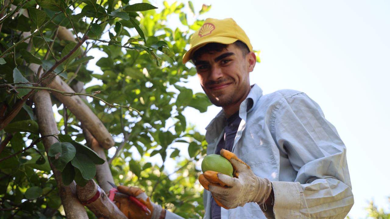 Yurt genelinden ve Avrupa`dan talep gören limon hasadı için bahçeye giren işçiler, ilk hasatları türkü eşliğinde yaptı.