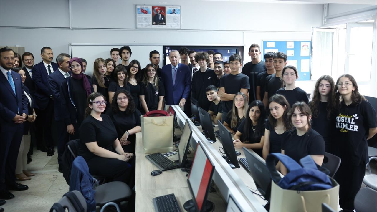 Cumhurbaşkanı Erdoğan, program öncesinde okul bahçesine fidan diktikten sonra sınıfları gezerek öğrencilerle sohbet etti.