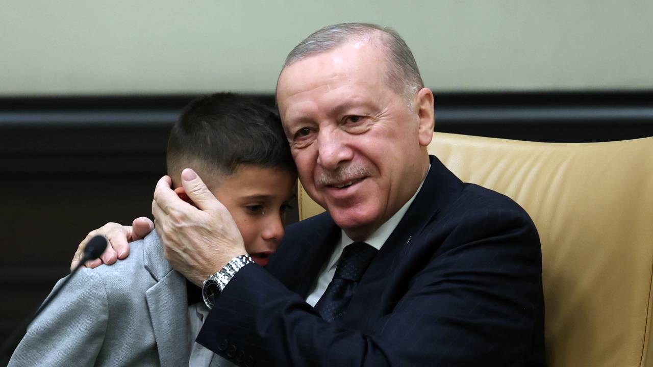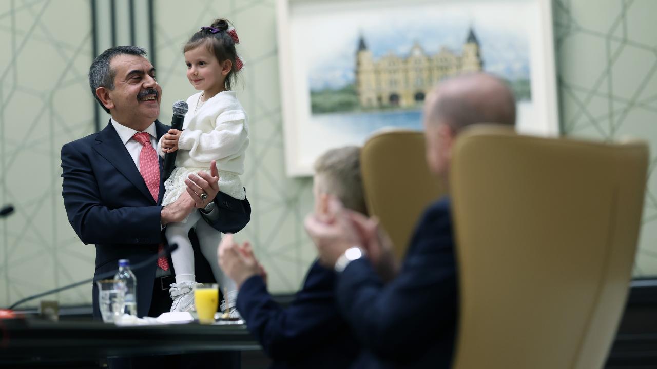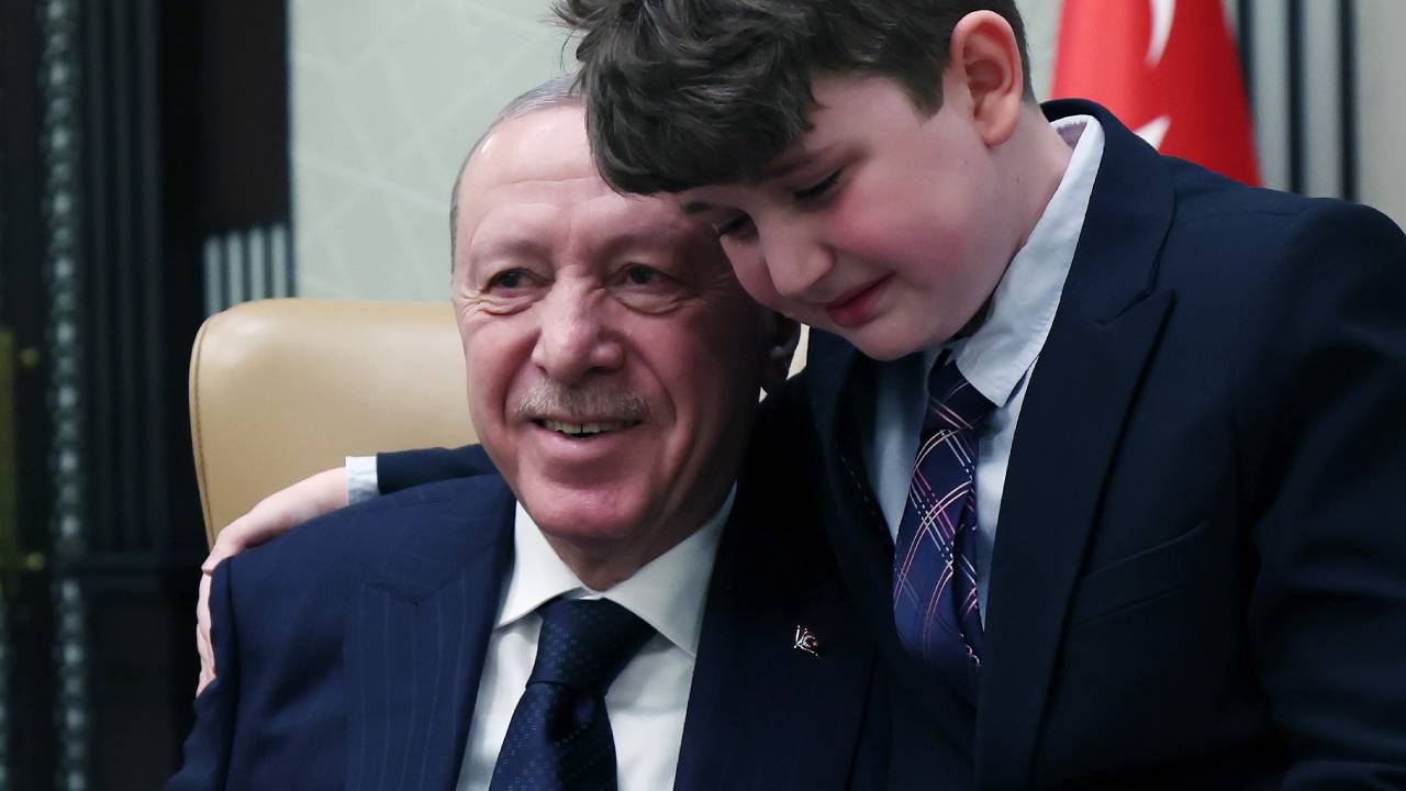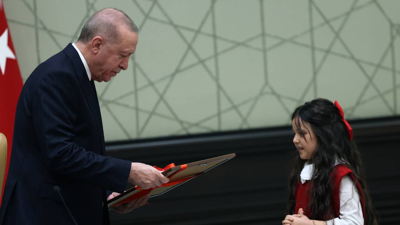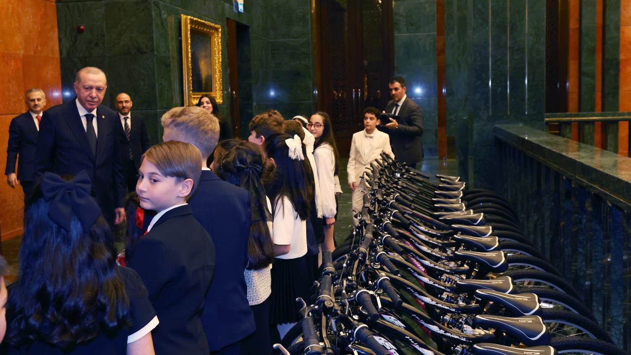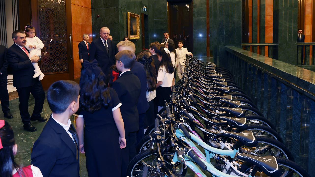 Cumhurbaşkanı Recep Tayyip Erdoğan, 23 Nisan Ulusal Egemenlik ve Çocuk Bayramı ile TBMM'nin 106. açılış yıl dönümü dolayısıyla Cumhurbaşkanlığı Külliyesi'nde Milli Eğitim Bakanı Yusuf Tekin ve beraberindeki çocukları kabul etti.