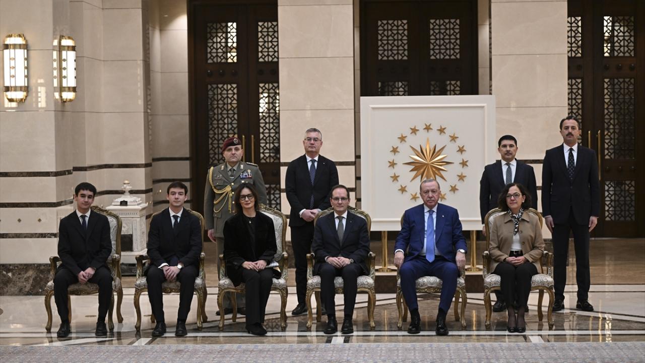 Büyükelçilik mensupları ve aile fertlerini takdim eden büyükelçiler, Erdoğan ile hatıra fotoğrafı çektirdi.
