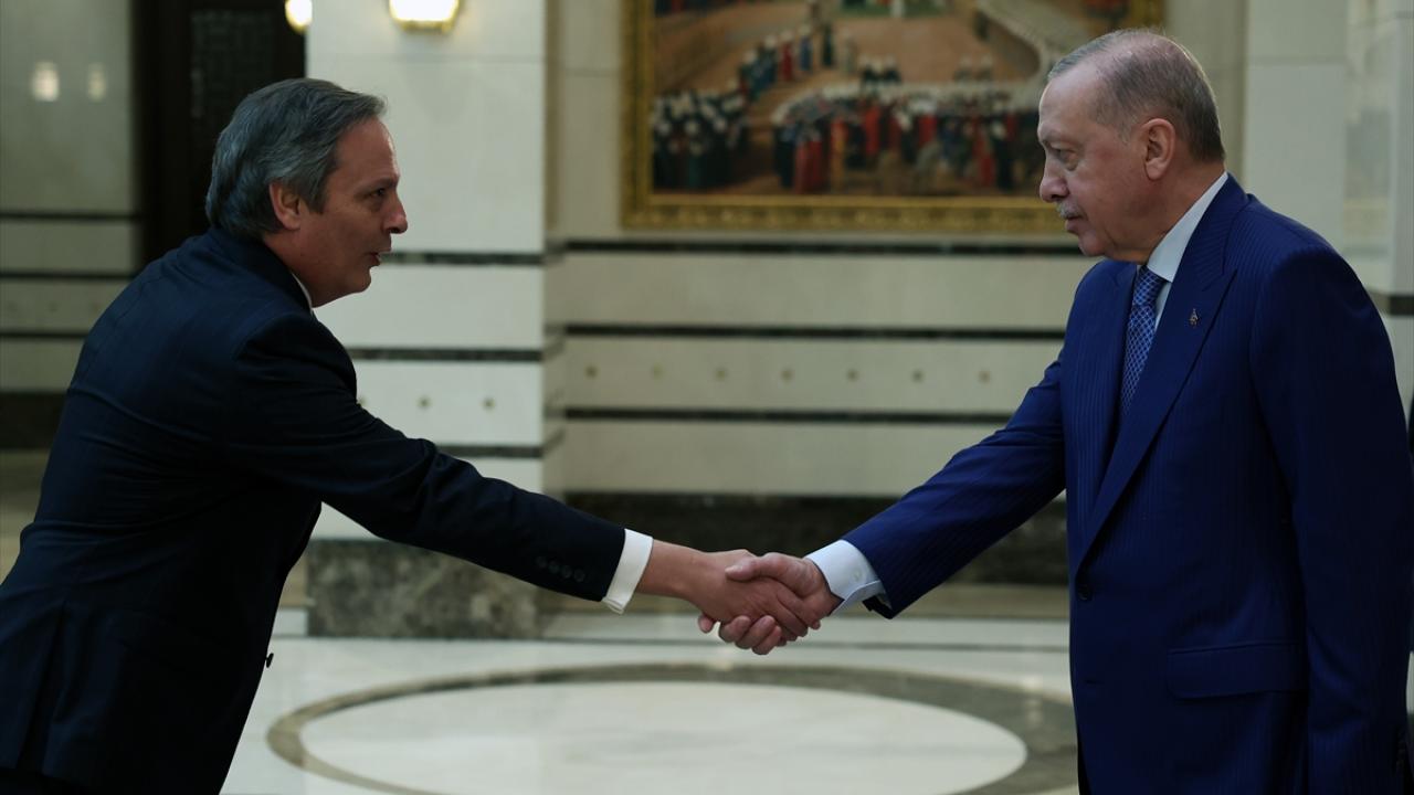 Cumhurbaşkanlığı Külliyesi`ndeki kabulde, İtalya Büyükelçisi Giuseppe Manzo, Arjantin Büyükelçisi Pablo Jose Rodriguez Brizuela ve Katar Büyükelçisi Faisal Abdullah H. A. Al-Hanzab, Cumhurbaşkanı Erdoğan`a güven mektuplarını sundu.