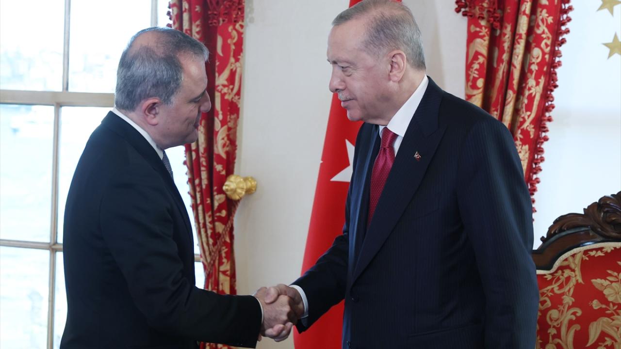 Cumhurbaşkanı Erdoğan, Dolmabahçe`deki Çalışma Ofisi`nde Azerbaycan Dışişleri Bakanı Ceyhun Bayramov, Rusya Dışişleri Bakanı Sergey Lavrov, İran Dışişleri Bakanı Abbas Erakçi ve Ermenistan Dışişleri Bakanı Ararat Mirzoyan`ı kabul ederek görüştü.