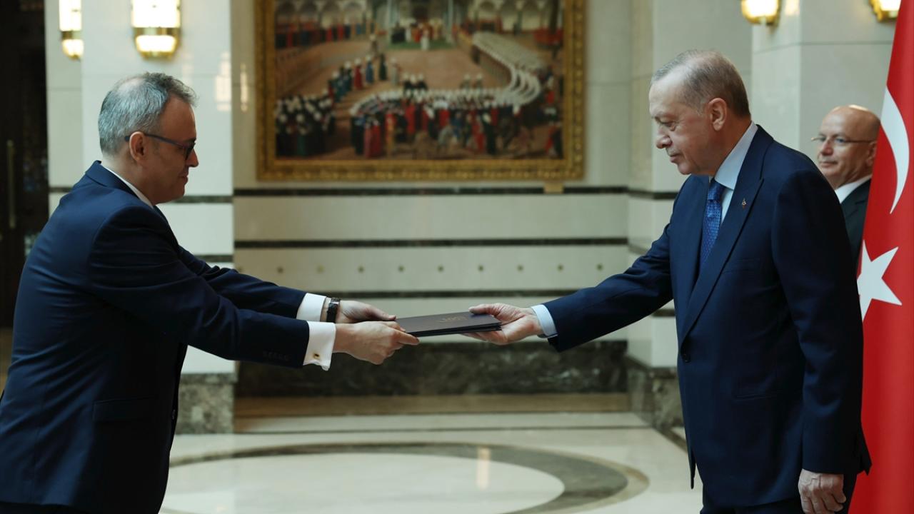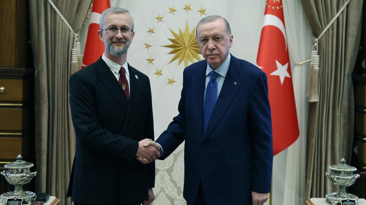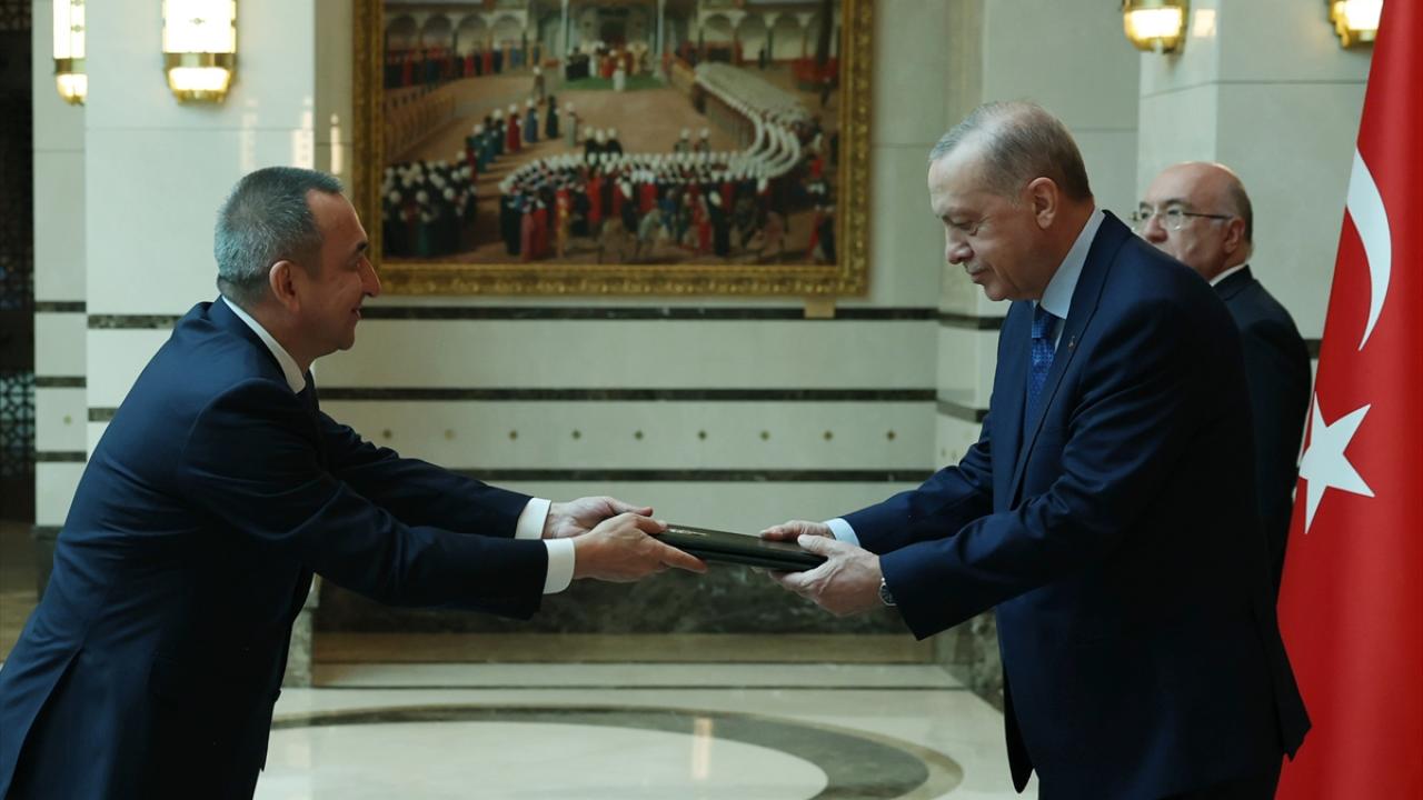 Cumhurbaşkanlığı Külliyesi`ndeki kabulde, Ukrayna Büyükelçisi Nariman Celalov, Cumhurbaşkanı Erdoğan`a güven mektubunu sundu.