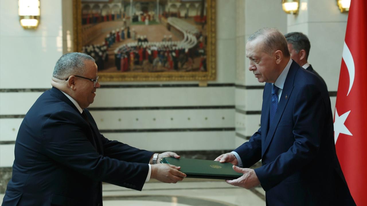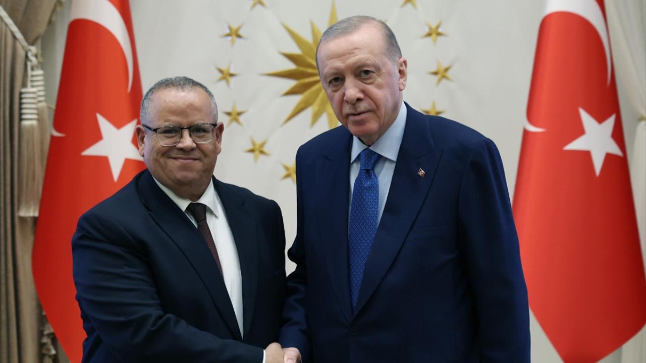 Cumhurbaşkanlığı Külliyesi`ndeki kabulde, Cezayir Büyükelçisi Boumediene Guennad, Cumhurbaşkanı Erdoğan`a güven mektubunu sundu.