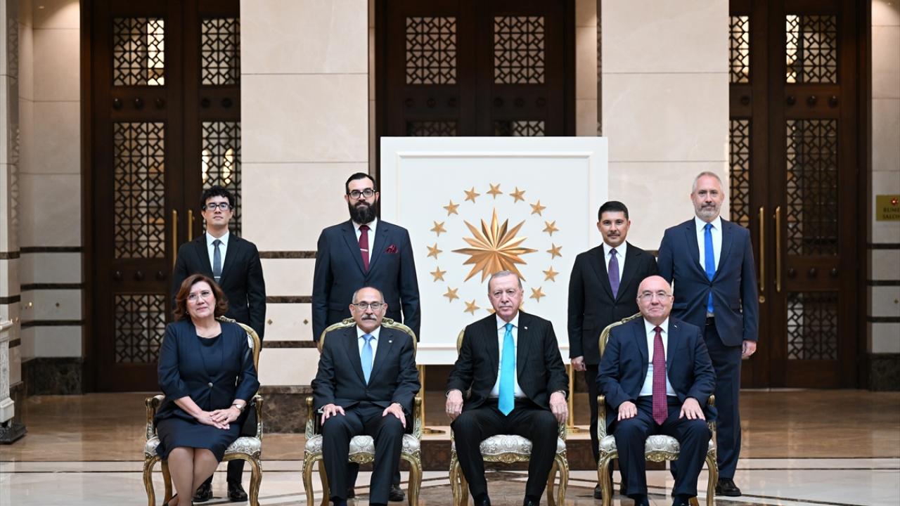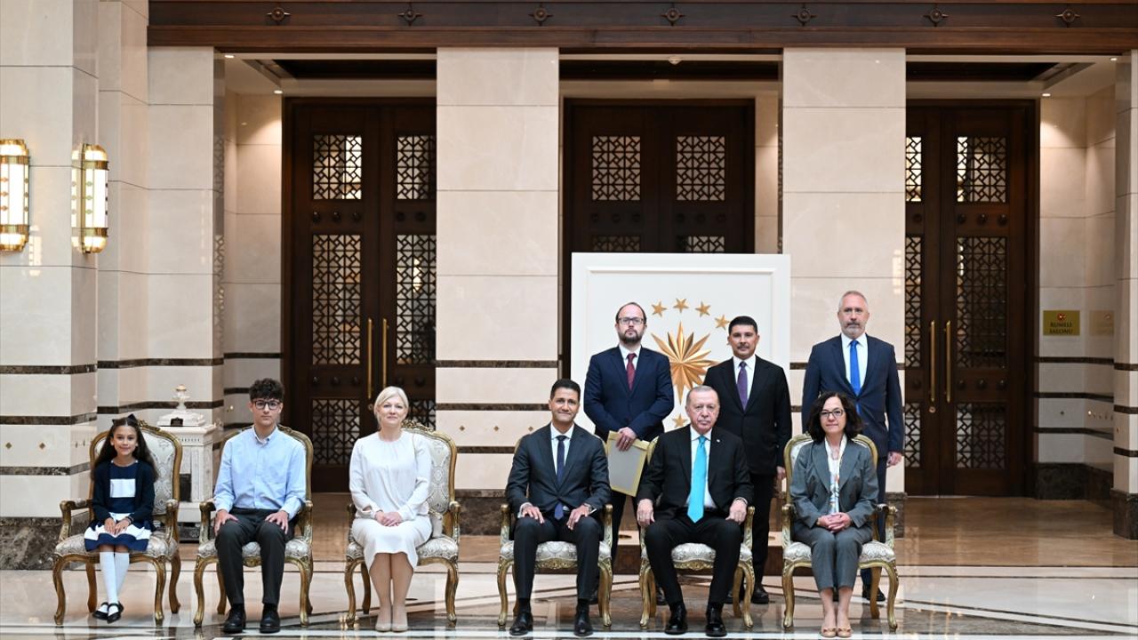 Büyükelçilik mensupları ve aile fertlerini takdim eden büyükelçiler, Cumhurbaşkanı Erdoğan ile hatıra fotoğrafı çektirdi.