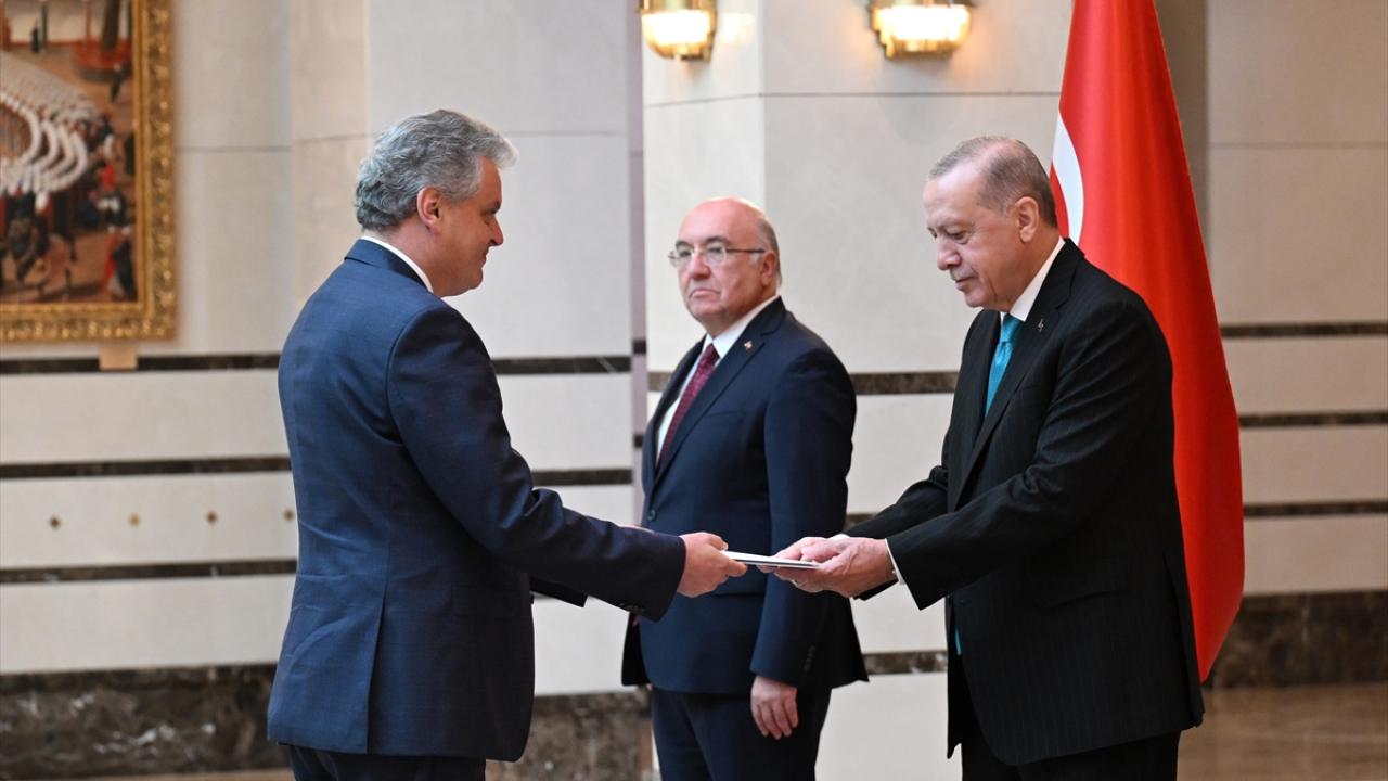 Cumhurbaşkanlığı Külliyesi`ndeki kabulde, Paraguay Büyükelçisi Cirilo Guillermo Sosa Flores, Moldova Büyükelçisi Oleg Serebrian, Avustralya Büyükelçisi Sally-Anne Vincent ve Lüksemburg Büyükelçisi Daniel Da Cruz, Cumhurbaşkanı Erdoğan`a güven mektuplarını sundu.