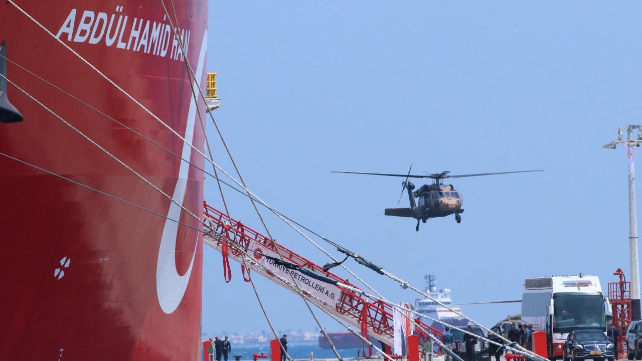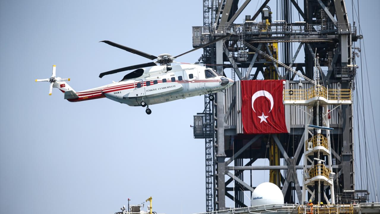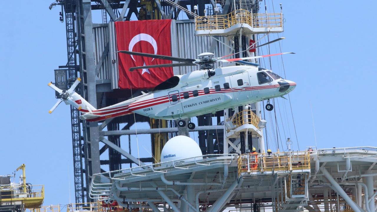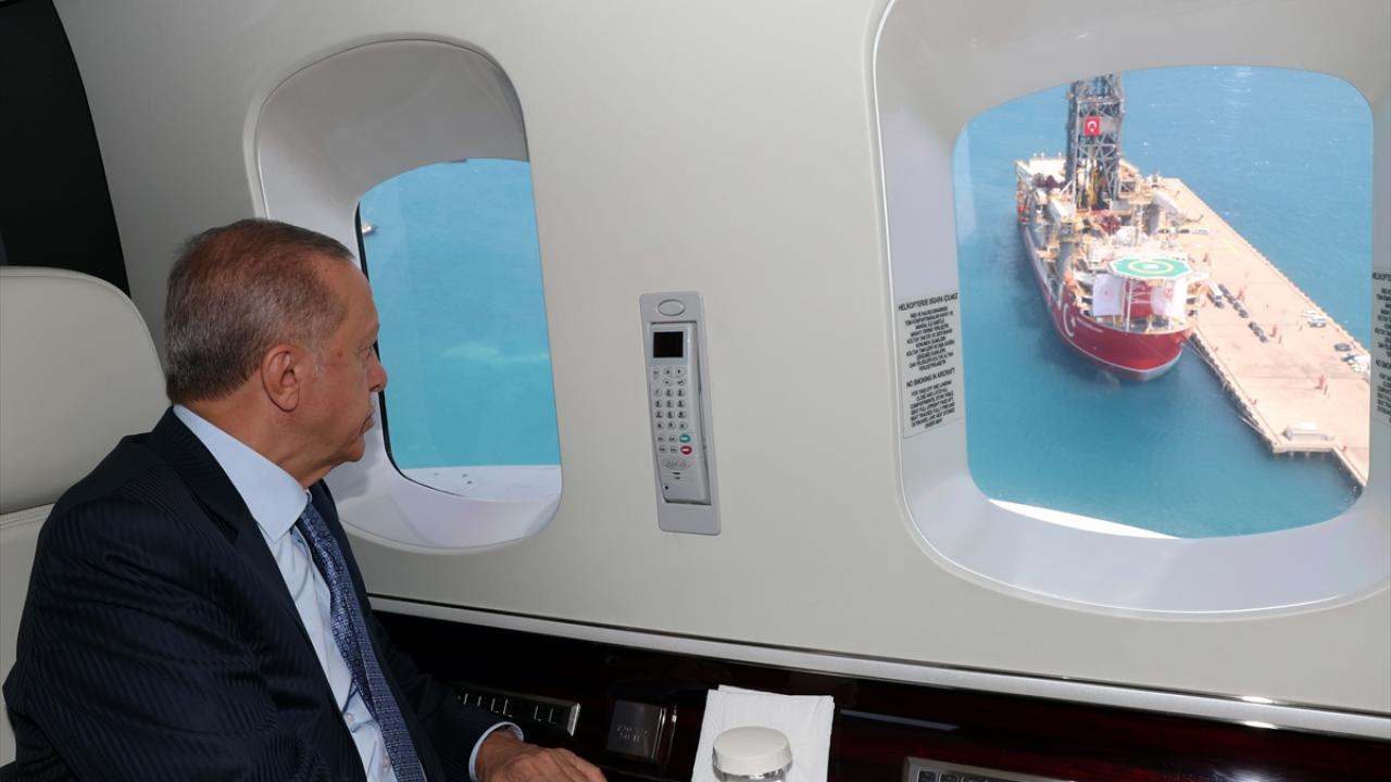Erdoğan, helikopterle geldiği bölgede Abdülhamid Han Sondaj Gemisi`ni havadan inceledi.