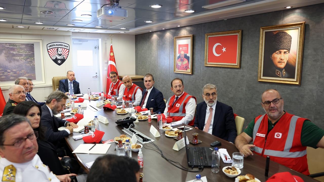 Cumhurbaşkanı Recep Tayyip Erdoğan, Taşucu Limanı'nda Türkiye'nin hidrokarbon arama çalışmalarına katılacak Abdülhamid Han Sondaj Gemisi'nde incelemelerde bulundu.