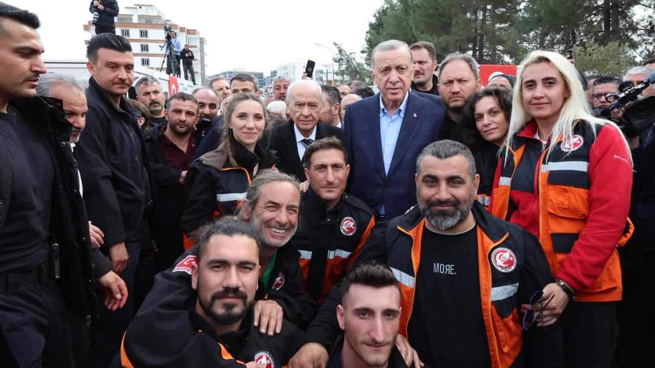 Deprem sonrası yürütülen çalışmalarla ilgili incelemelerde bulunan Erdoğan`a, MHP Genel Başkanı Devlet Bahçeli de eşlik etti.