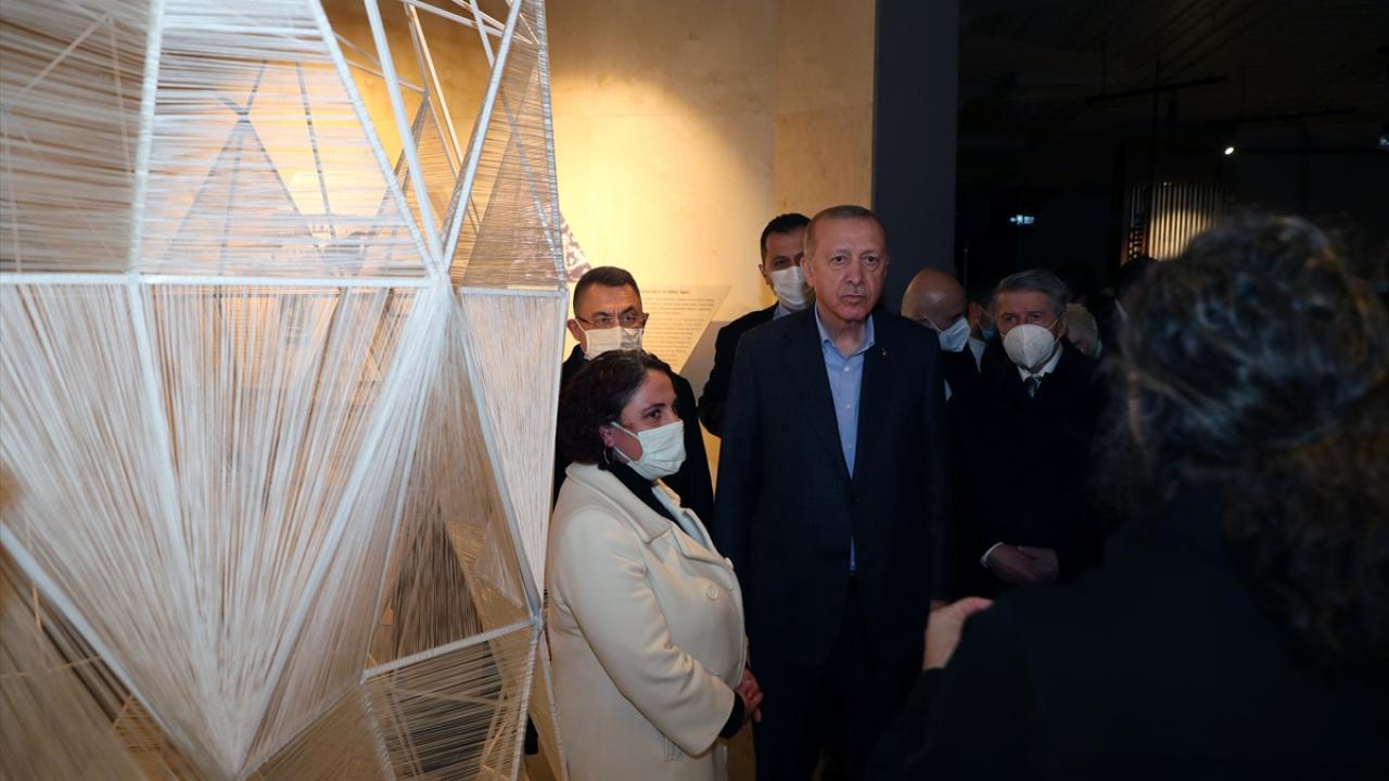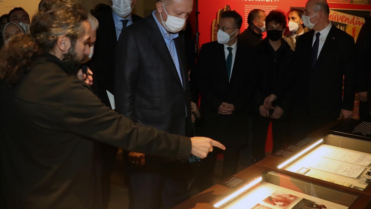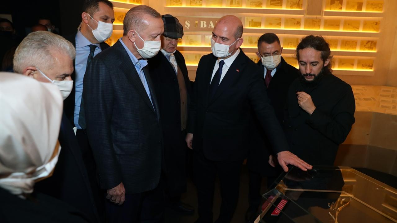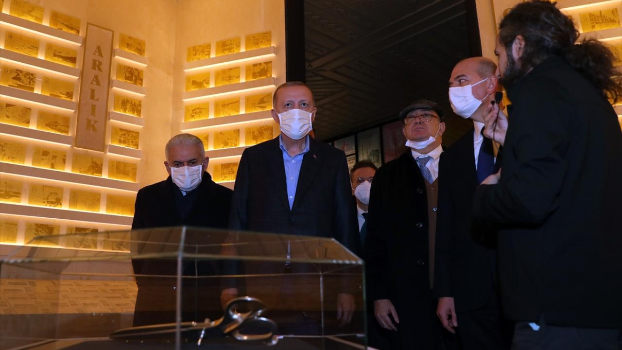 Müzede gezip, incelemelerde bulunan Erdoğan, yetkililerden bilgi aldı.