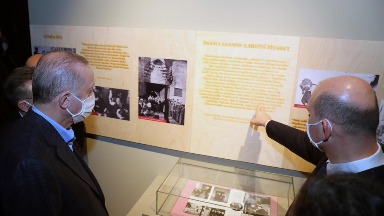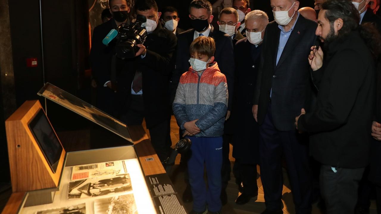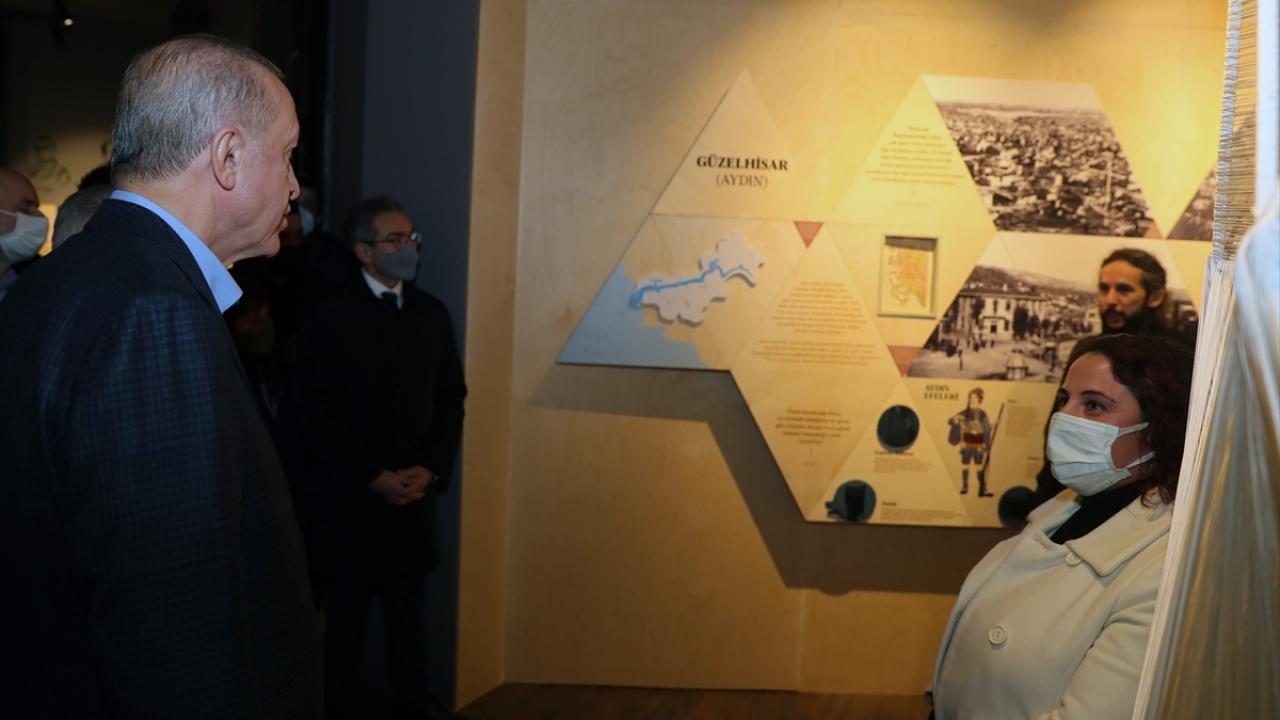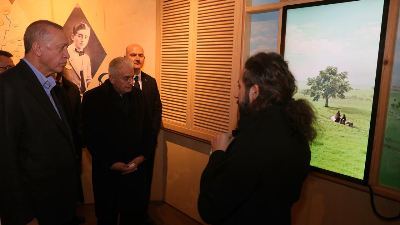Müzede gezip, incelemelerde bulunan Erdoğan, yetkililerden bilgi aldı.