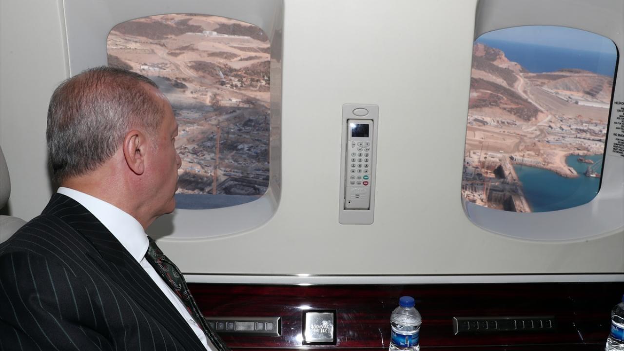 Cumhurbaşkanı Recep Tayyip Erdoğan, Mersin`deki temasları kapsamında Akkuyu Nükleer Enerji Santrali inşaat alanını helikopterden inceledi.