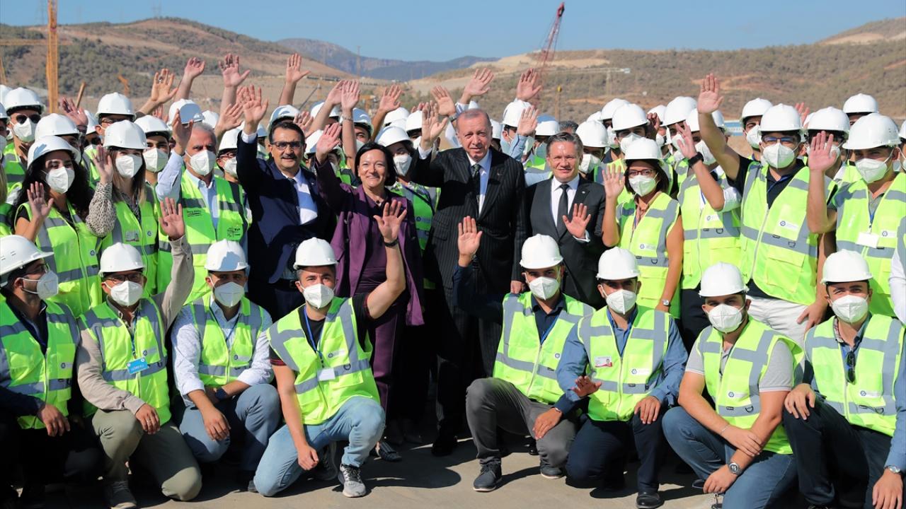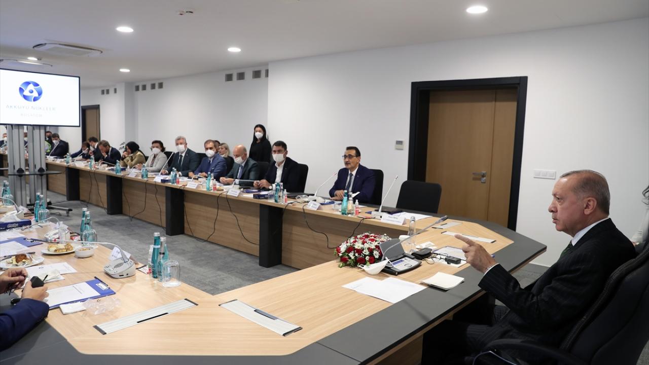 Cumhurbaşkanı Recep Tayyip Erdoğan, Mersin`deki temasları kapsamında Akkuyu Nükleer Enerji Santrali inşaat alanındaki çalışmalara ilişkin yetkililerden bilgi aldı.