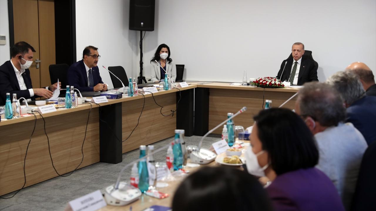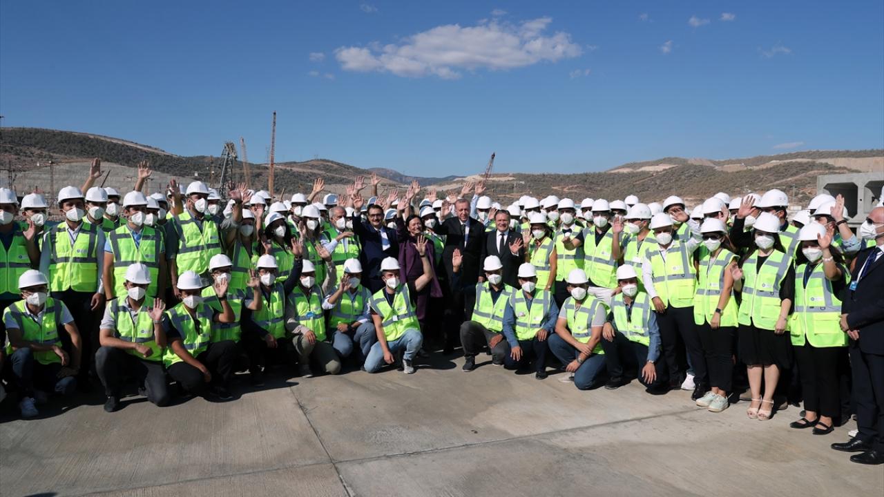 Çalışmalar hakkında yetkililerden bilgi alan Erdoğan, proje öncesinde nükleer enerji konusunda eğitim almak için Rusya`ya gönderilen ve inşaatta aktif görev alan 186 Türk mühendisten 113`ü ile bir araya geldi.