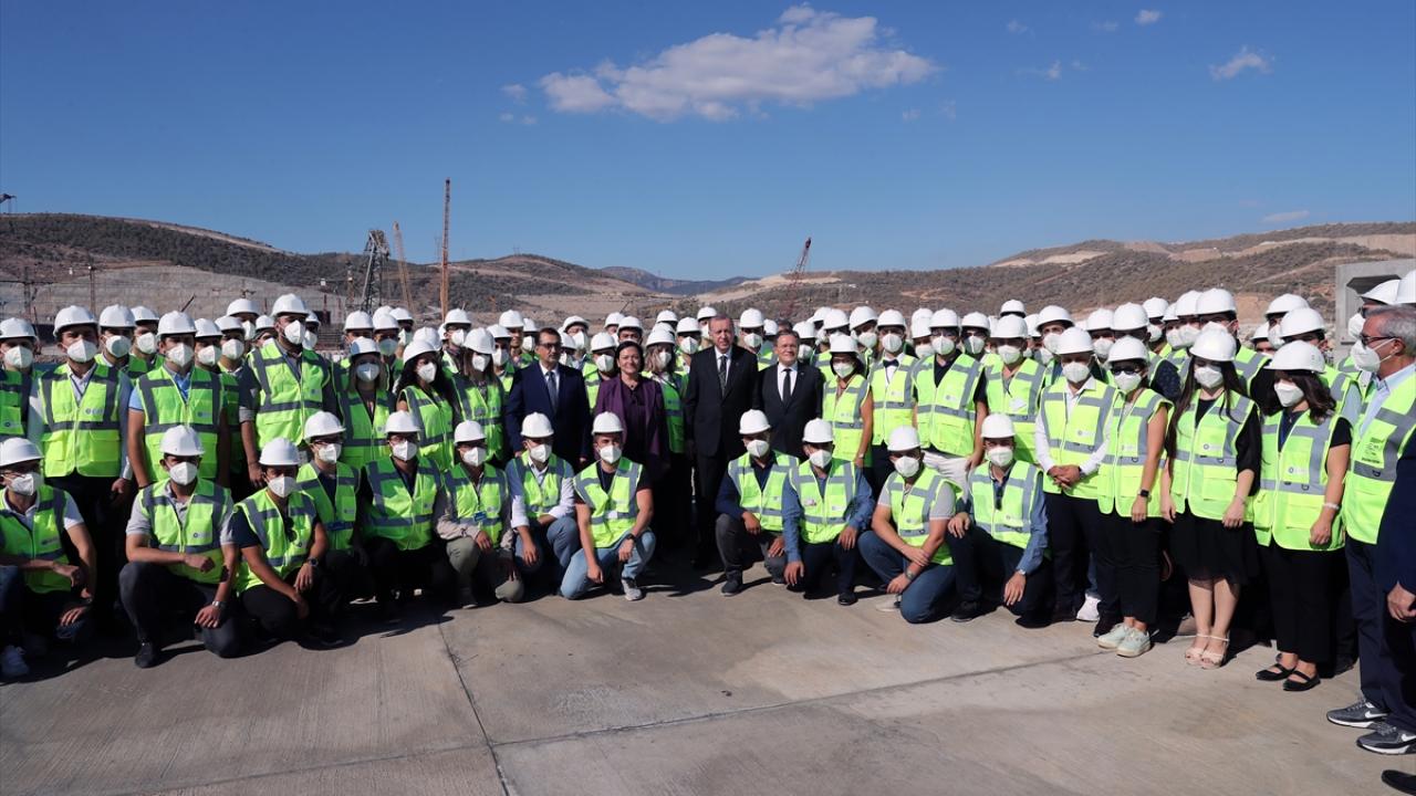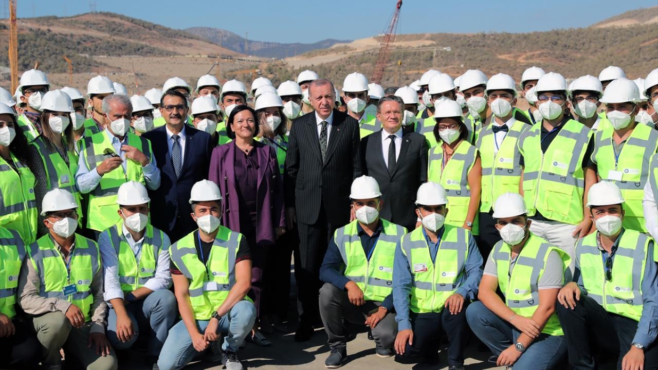 Cumhurbaşkanı Erdoğan, santral çalışanlarıyla fotoğraf çektirdi.