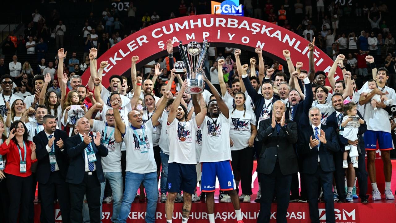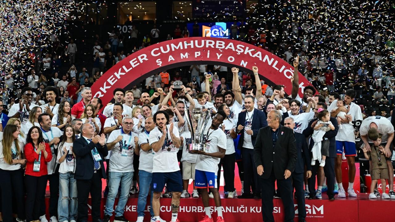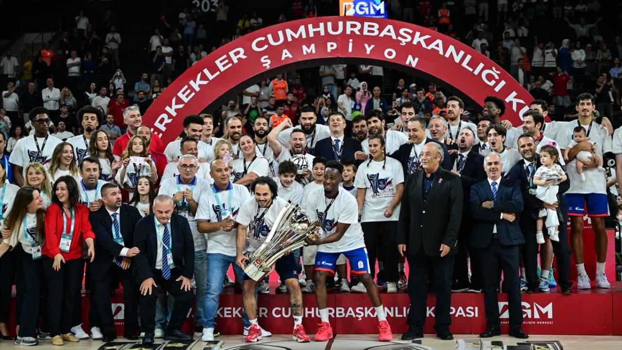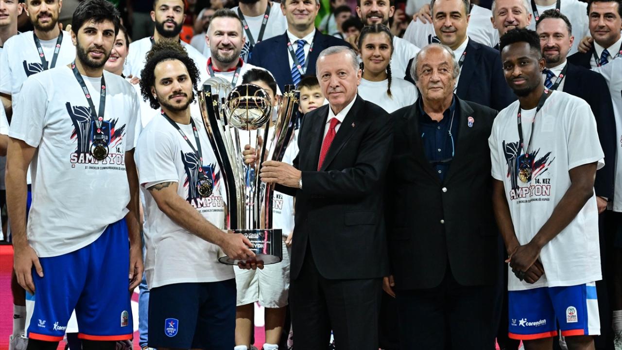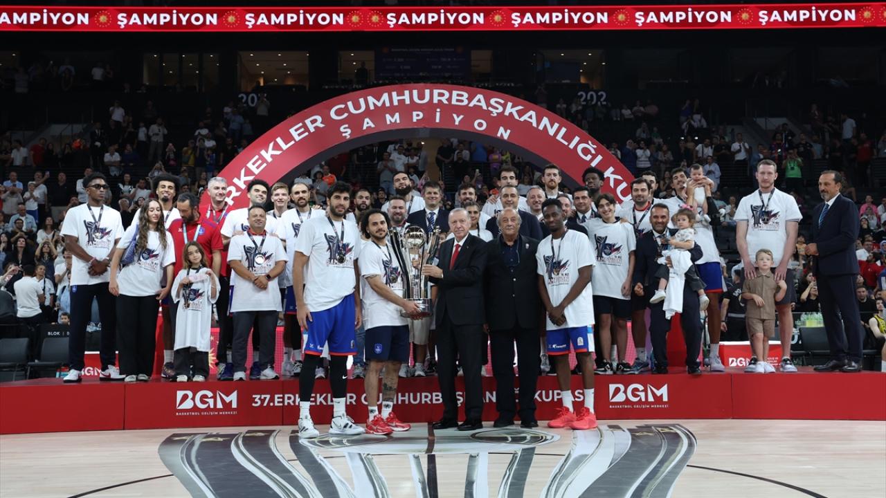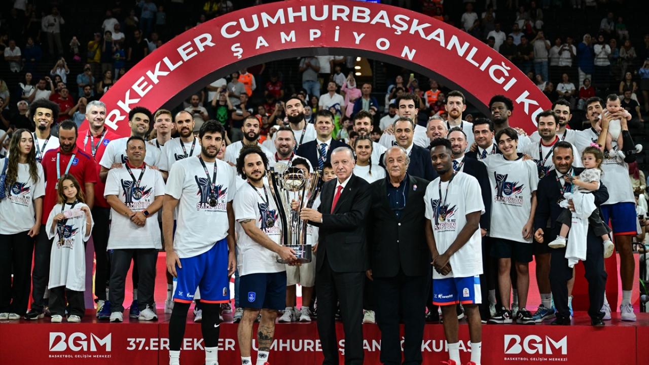 Cumhurbaşkanı Recep Tayyip Erdoğan, Fenerbahçe Beko'yu 83-82'lik skorla mağlup eden Anadolu Efes'e 37. Erkekler Cumhurbaşkanlığı Kupası'nı verdi.