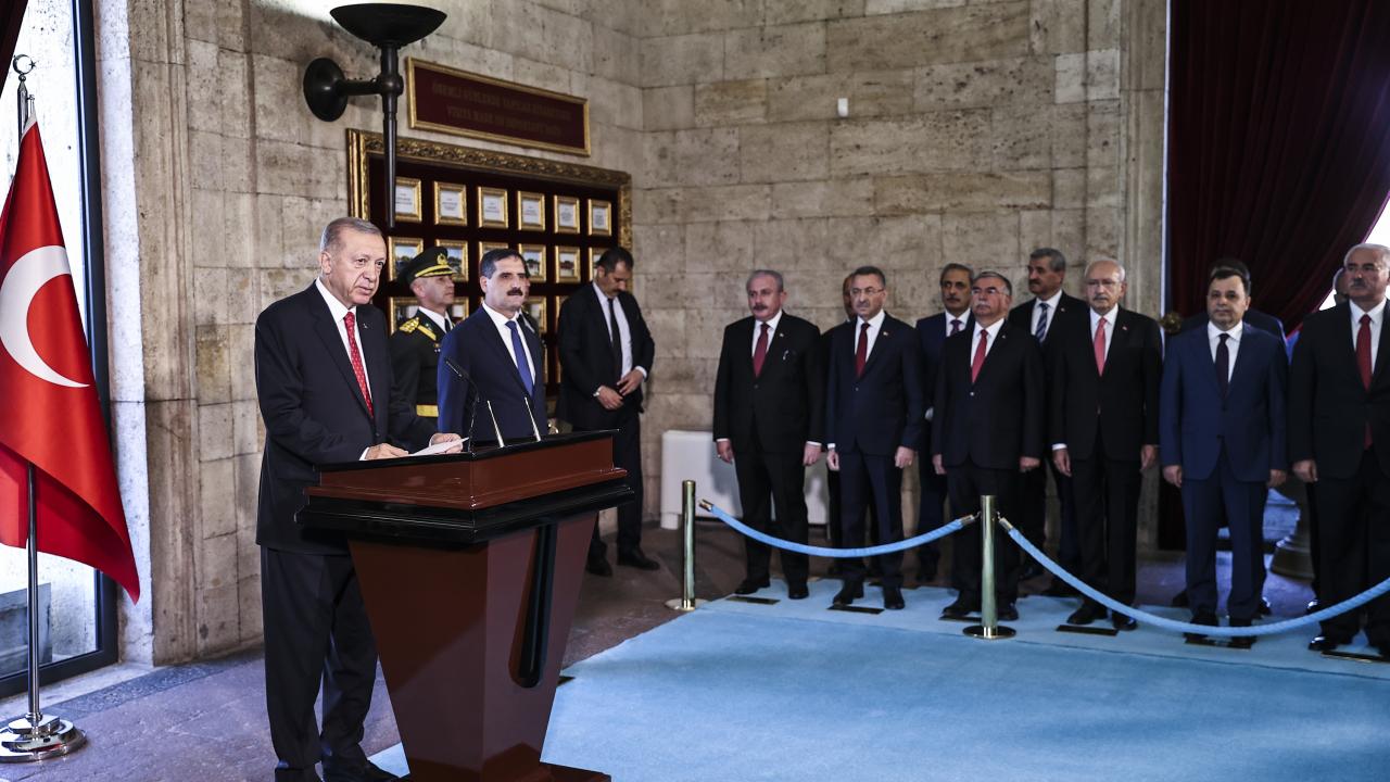Cumhurbaşkanı Recep Tayyip Erdoğan başkanlığındaki devlet erkanı, 30 Ağustos Zafer Bayramı ve Türk Silahlı Kuvvetleri Günü dolayısıyla Anıtkabir'e ziyarette bulundu.