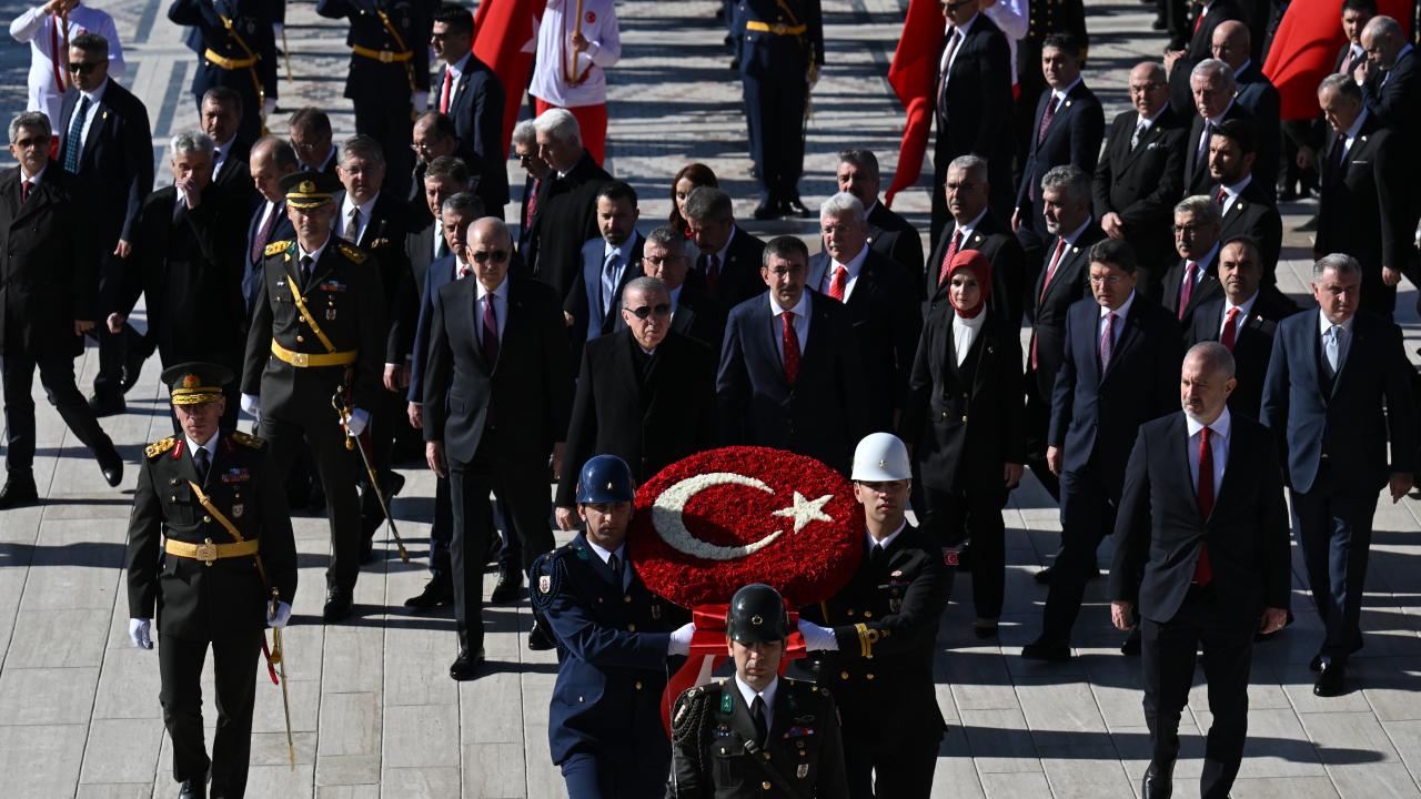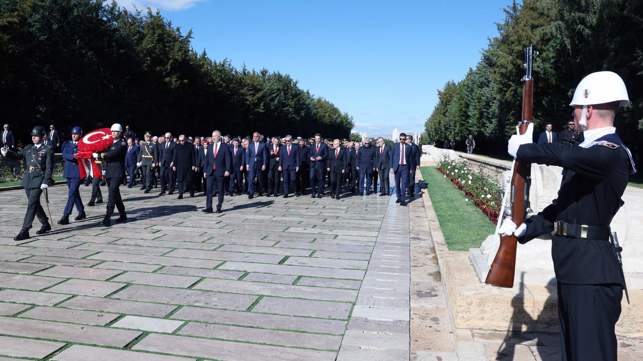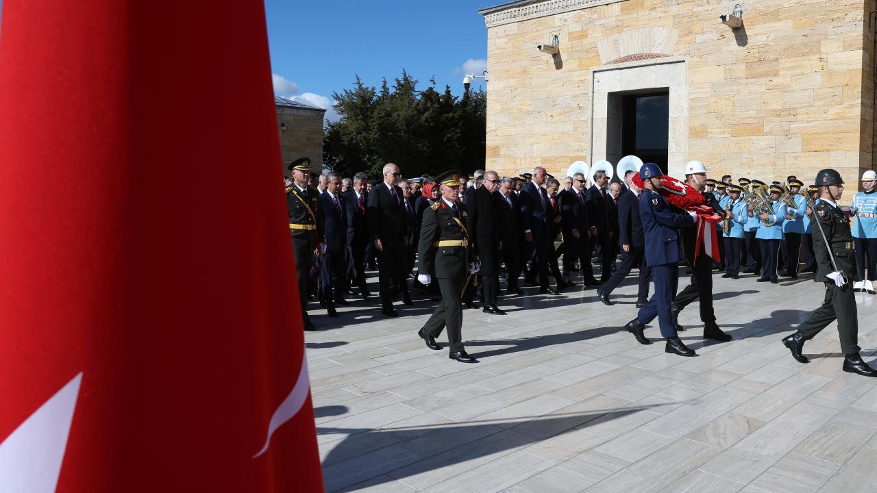 29 Ekim Cumhuriyet Bayramı ve Cumhuriyet`in ilanının 102`nci yıl dönümü kutlamaları kapsamında ilk tören, Anıtkabir`de düzenlendi. Tören, devlet erkanının Aslanlı Yol`da yürüyüşüyle başladı.