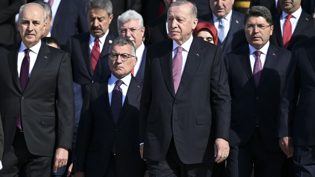 Cumhurbaşkanı Erdoğan`ın başkanlığındaki Aslanlı Yol`daki kortejde, Türkiye Büyük Millet Meclisi Başkanı Numan Kurtulmuş, Cumhurbaşkanı Yardımcısı Cevdet Yılmaz, CHP Genel Başkanı Özgür Özel, İYİ Parti Genel Başkanı Müsavat Dervişoğlu, Cumhurbaşkanlığı Kabinesi üyeleri, yüksek yargı organlarının başkanları, Genelkurmay Başkanı Orgeneral Selçuk Bayraktaroğlu, kuvvet komutanları, siyasi partilerin temsilcileri ve diğer devlet erkanı yer aldı.