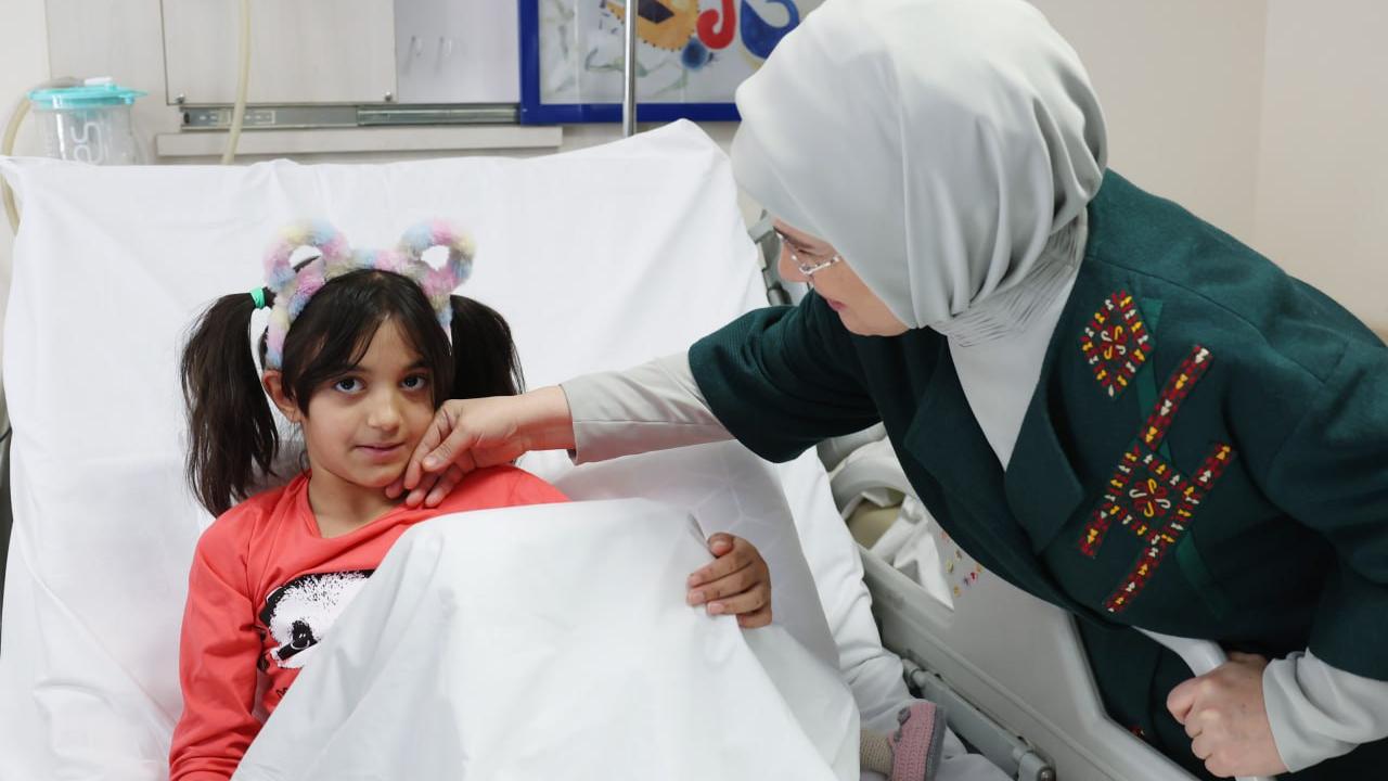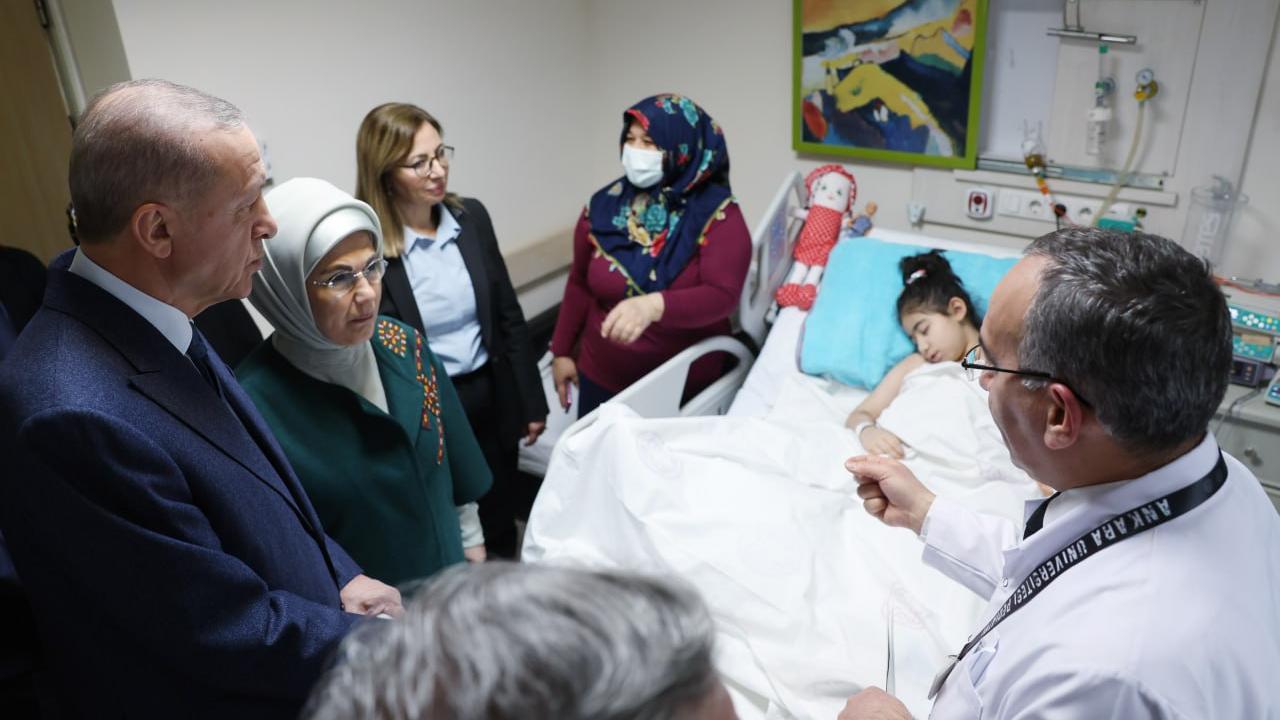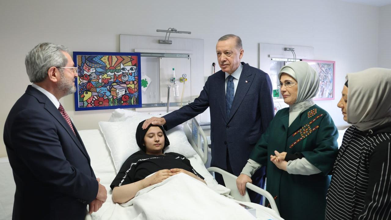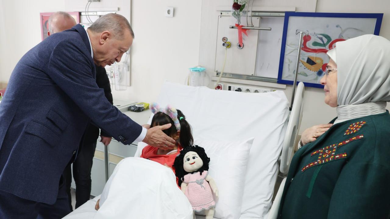 Depremin 248`inci saatinde Kahramanmaraş`ta mahsur kaldığı enkazdan kurtarılan 17 yaşındaki Aleyna Ölmez ile Hatay`dan getirilen 16 yaşındaki Hülyasu Kısa ve 8 yaşındaki Feyza Nur Yakar, Kahramanmaraş`tan getirilen 7 yaşındaki Miraç Eren Döner ve 10 yaşındaki Ayça Çepni, Şanlıurfa`dan getirilen 9 yaşındaki Zeynep Küçükler`i ziyaret eden Erdoğan, tedavileri süren hastaların sağlık durumu hakkında doktorlardan ve Ankara Üniversitesi Rektörü Prof. Dr. Necdet Ünüvar`dan bilgi aldı.