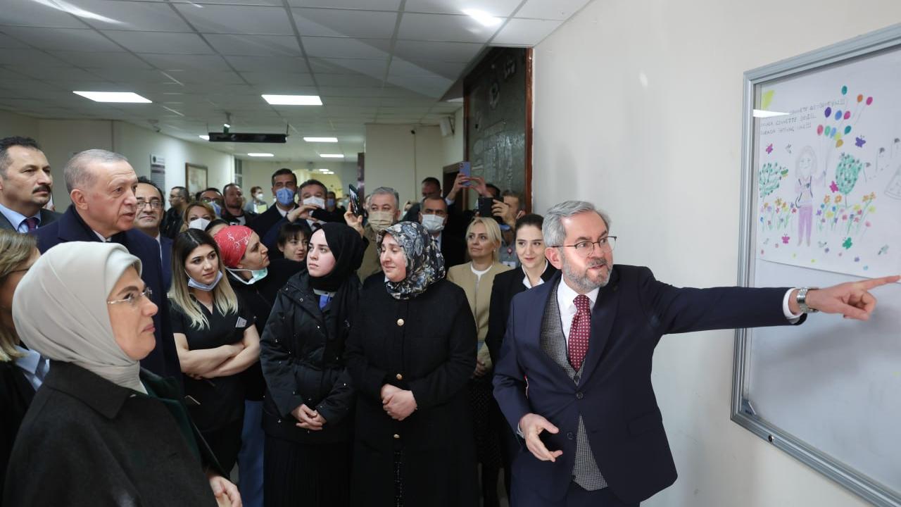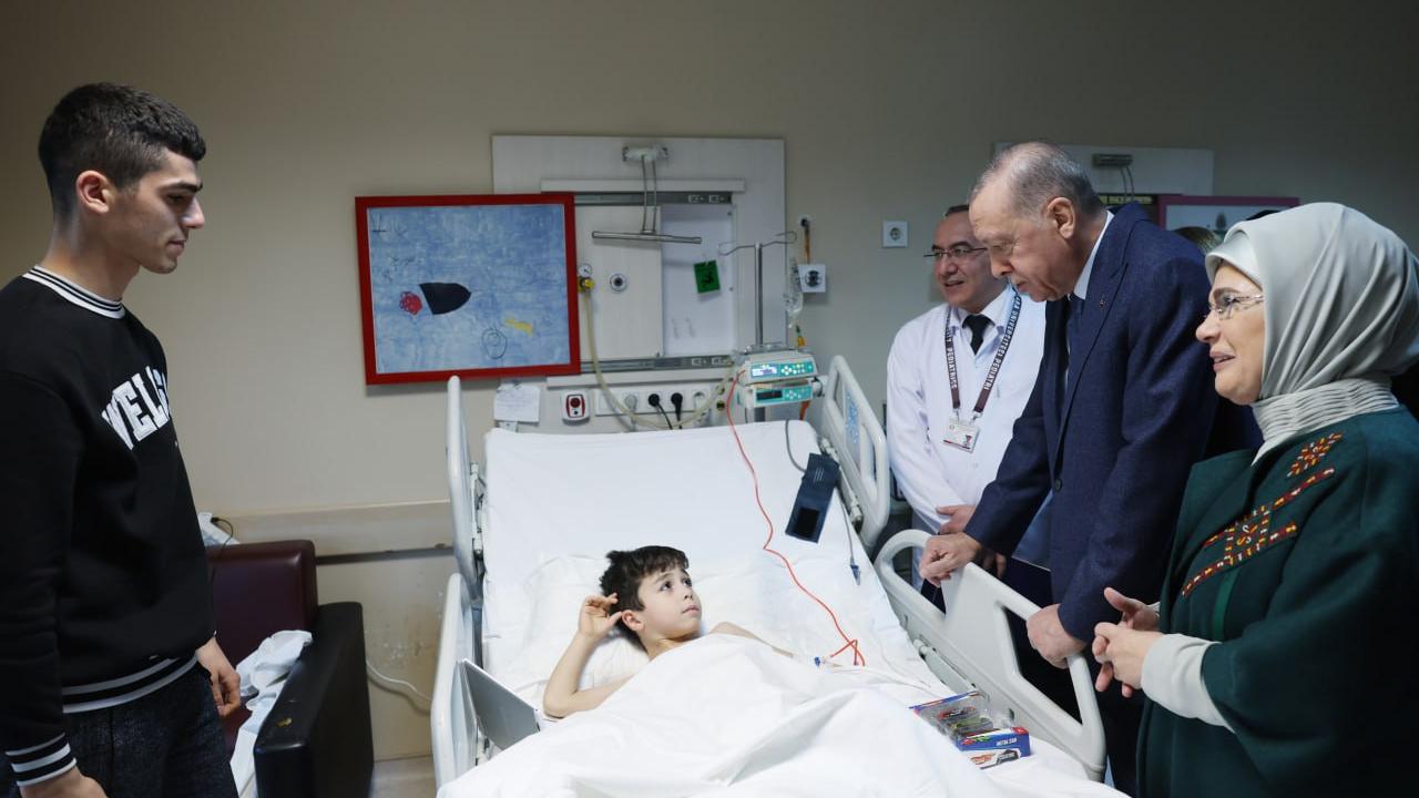 Erdoğan, daha sonra Ankara Etlik Şehir Hastanesi`nde tedavi gören depremzedeleri ziyaret etti.