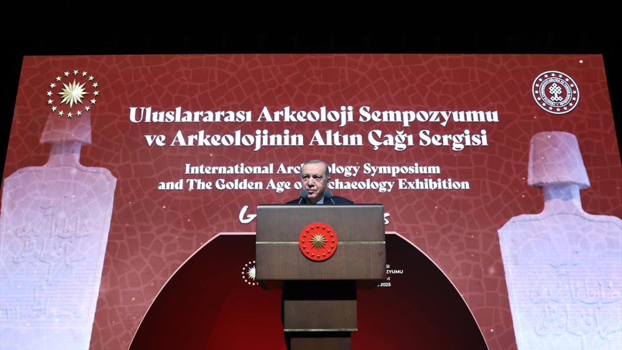Cumhurbaşkanı Recep Tayyip Erdoğan, Beştepe Millet Kütüphanesi'nde düzenlenen Uluslararası Arkeoloji Sempozyumu ve Arkeolojinin Altın Çağı Sergisi açılışına katıldı.