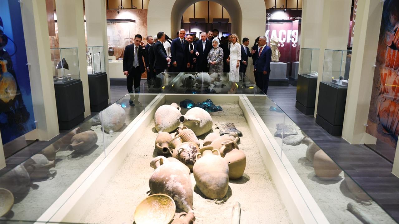Cumhurbaşkanı Erdoğan, açılışı öncesinde Arkeolojinin Altın Çağı Sergisi`ni gezdi.