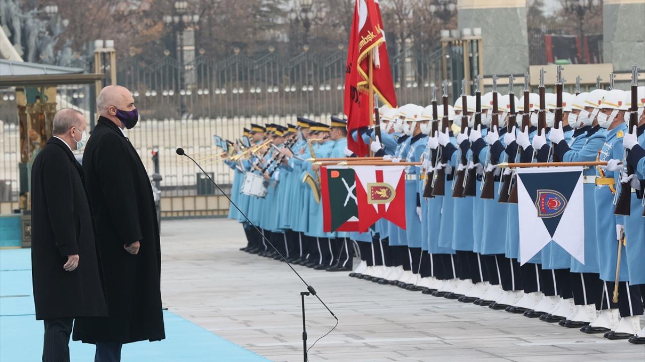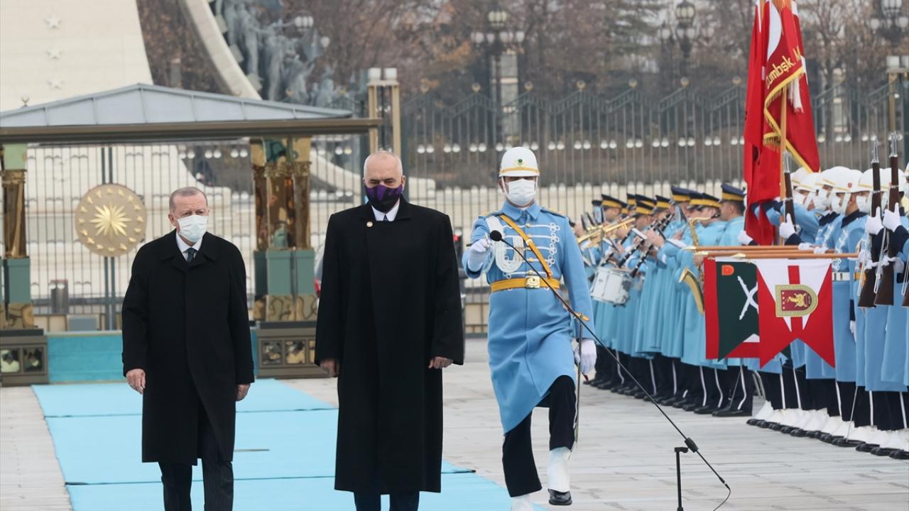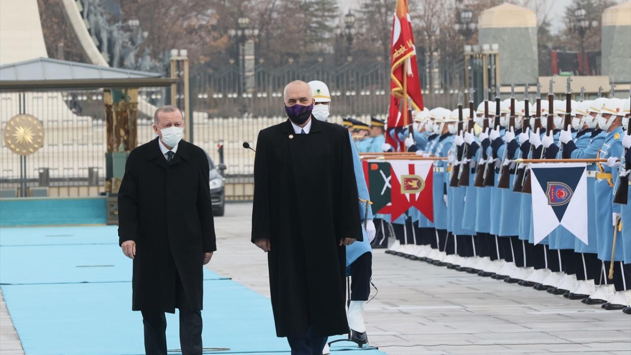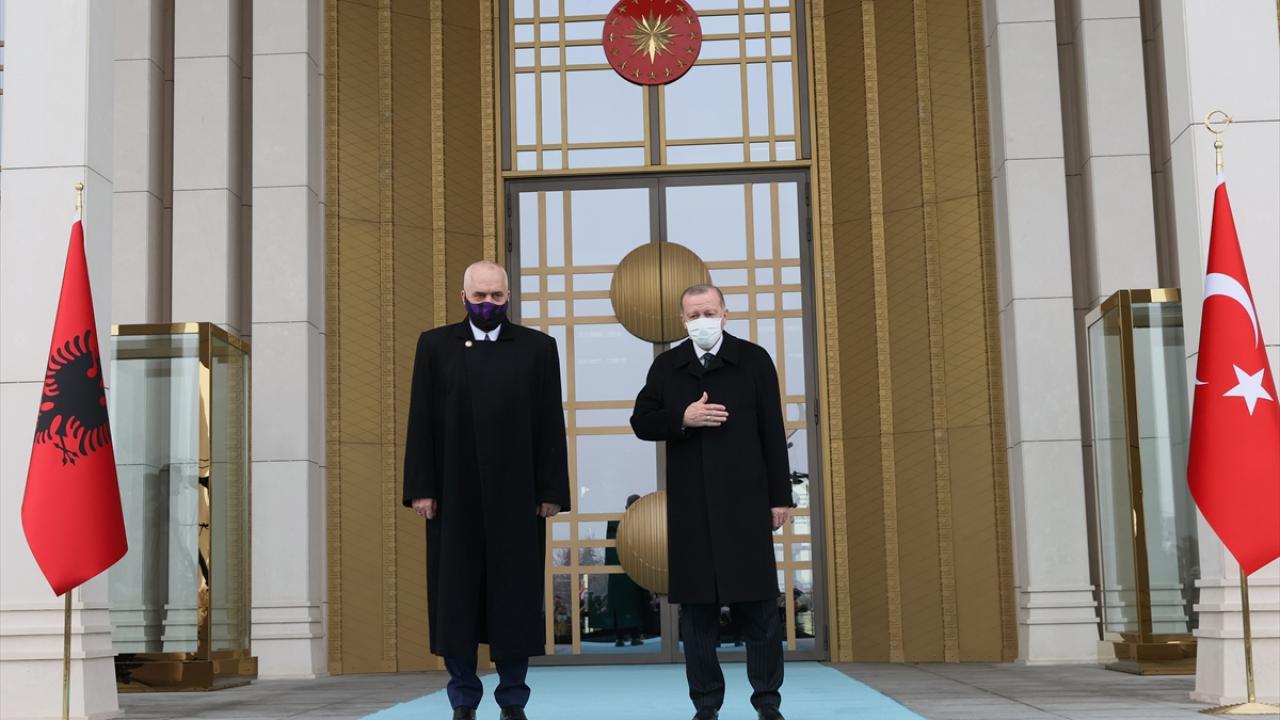 Türkiye Cumhurbaşkanı Recep Tayyip Erdoğan, Arnavutluk Başbakanı Edi Rama'yı, Cumhurbaşkanlığı Külliyesi'nde resmi törenle karşıladı.