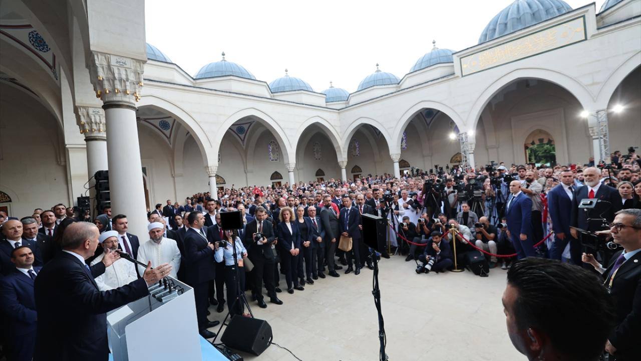 Cumhurbaşkanı Recep Tayyip Erdoğan, Arnavutluk'un başkenti Tiran'da Türkiye'nin desteğiyle Balkanlar'ın en büyük camisi olarak inşa edilen Namazgah Camii'nin açılışında konuştu.